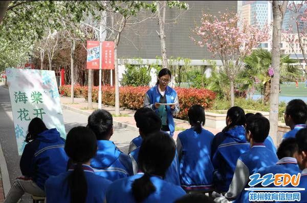 在校园海棠盛开的四月天,4月1日,郑州市第一〇一中学举办以“海棠花开—感受春天的诗意与美好”为主题的“我读·我在”海棠文化节特别活动。本次活动由郑州市第一〇一中学语文学科中心与生物组联合策划,为全校师生呈现了一场跨学科盛宴。