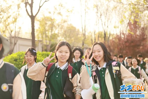 同学们按照班级序列出发,向郑州市森林公园进发。沿途大家欣赏着路边的春日美景,感受着大自然的魅力,亲近自然,放松身心。同学们一起唱歌,一起朗诵诗词,口号声与欢笑声交织成青春交响曲。途中,交警、学校领导、年级负责人、各班班主任、随行教师、体育组全体成员、校医、后勤等保障人员一直陪伴左右、守护和引领大家前进。队伍跨过熊耳河桥,途经北三环立交桥下,抵达金融岛对面的龙湖内环西路,最终走进郑州市森林公园。