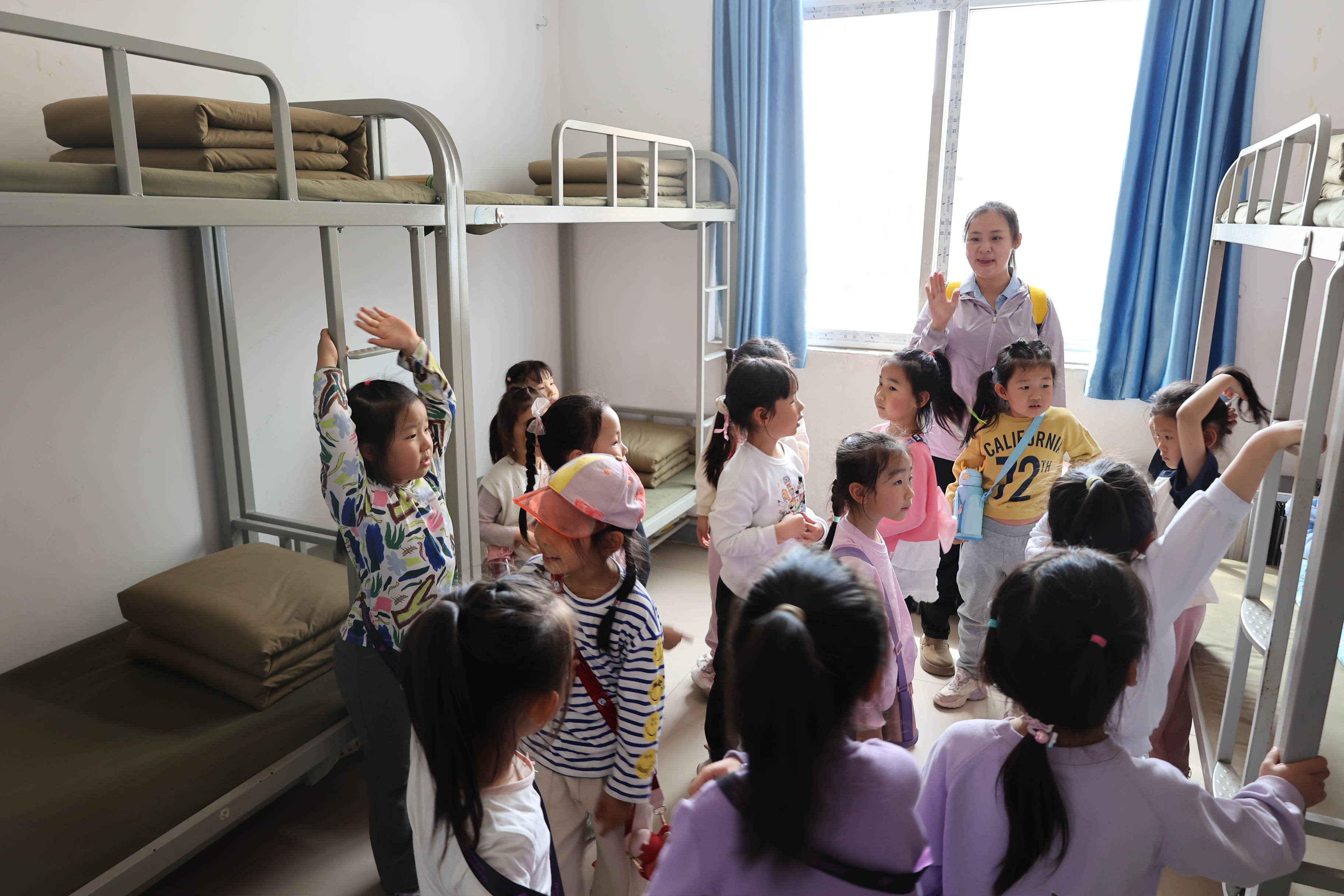 活动还安排了学生寝室参观环节。郑州市国防科技学校以军事化管理为特色,寝室内物品摆放整齐划一、床铺平整无褶皱,展现出严格的日常纪律要求。幼儿园带队负责人表示:“通过观察哥哥姐姐们的自律生活,孩子们对‘规则’和‘集体’有了更具体的认知,这正是国防教育真实的体现。”