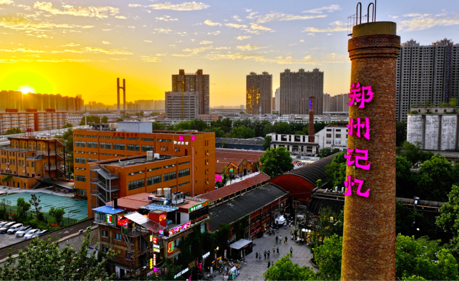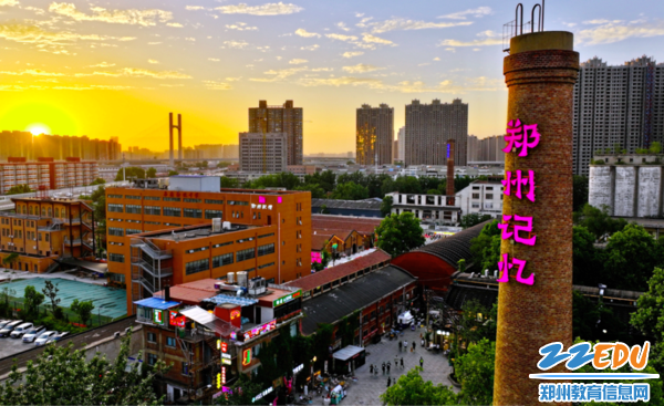 同学们兴奋地拍下了郑州记忆·油化厂创意园的晚霞