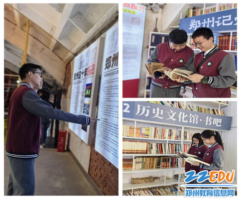 同学们参观郑州记忆·油化厂创意园的图书阅览区