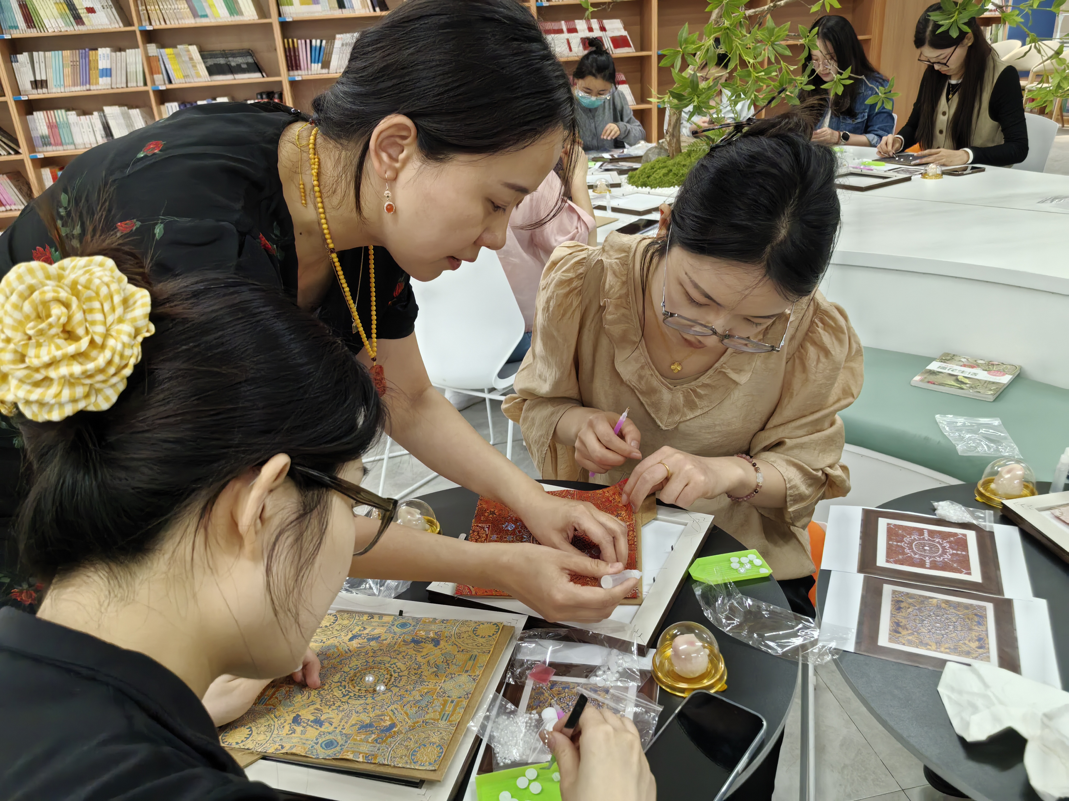 陈扬老师指导全体班主任老师制作宋锦珍珠画