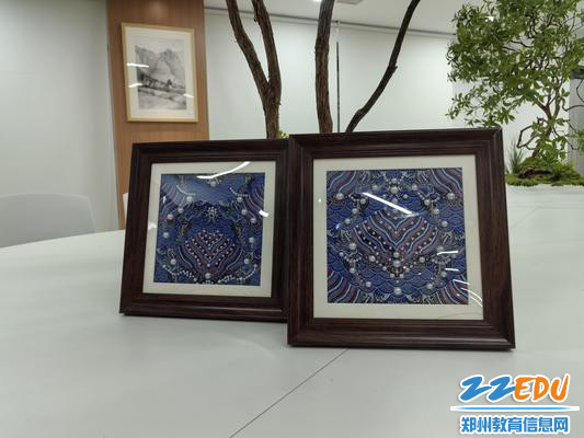 从宋锦底布的选择到珍珠颗粒的搭配,从构图比例的推敲到色彩层次的渲染,宋锦珍珠画将“以美育人”理念融入每一个创作细节。平日里忙碌于班级管理的班主任们,此刻化身“艺术匠人”。他们以宋锦为纸,珍珠为墨,将课堂上的谆谆教诲、课间时的暖心陪伴、深夜批改作业的剪影,凝练成一幅幅立体画卷。在活动过程中,班主任老师们突然理解了“教育是慢的艺术”这句话,就像每颗珍珠要经过三年孕育才能成形,班主任的陪伴何尝不是?那些看似“无用”的谈心、深夜回复的消息、运动会上的呐喊,都是孩子生命中不可替代的“蚌壳”。