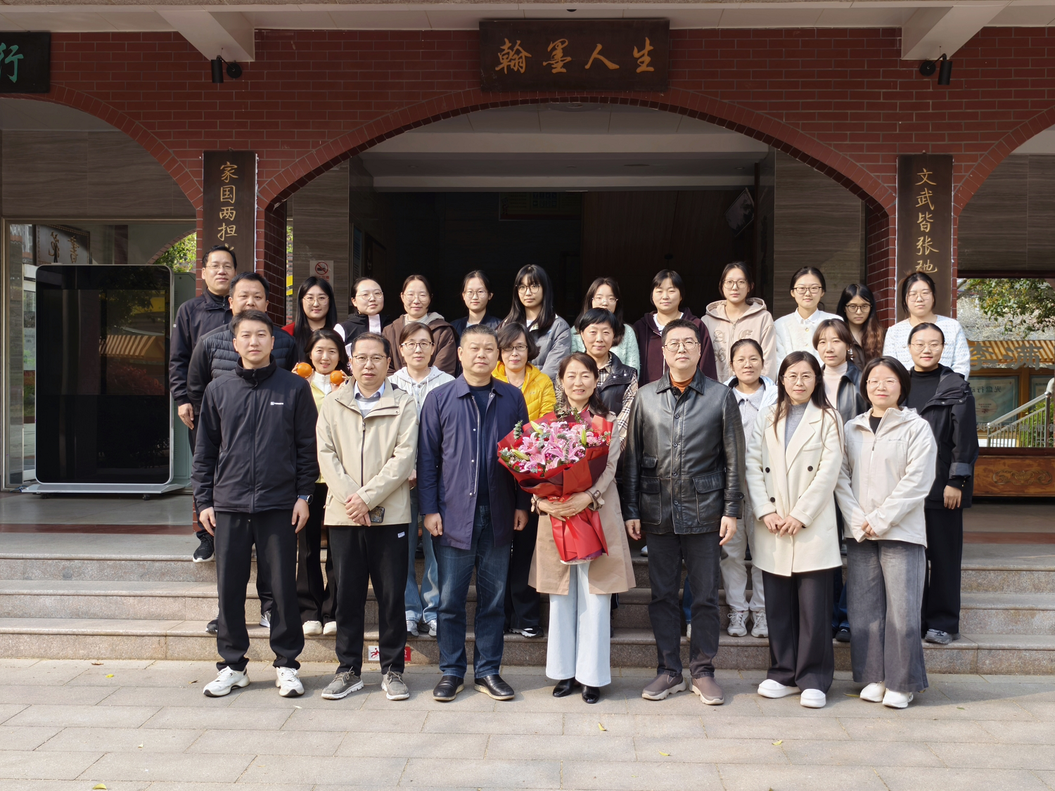 在温馨感人的氛围中,青年教师代表陈永俊为郭虹老师敬送鲜花,以芬芳敬意致谢师恩。随后,学校副校长、工会主席何伟代表学校向郭虹老师赠送荣休纪念品,李益为郭虹老师颁发荣休纪念证书,以此肯定郭虹老师数十年教育生涯的卓越成就与无私奉献。