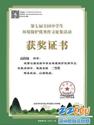 郑州市第十八中学学生在第七届全国中学生环境保护优秀作文征集活动中斩获佳绩