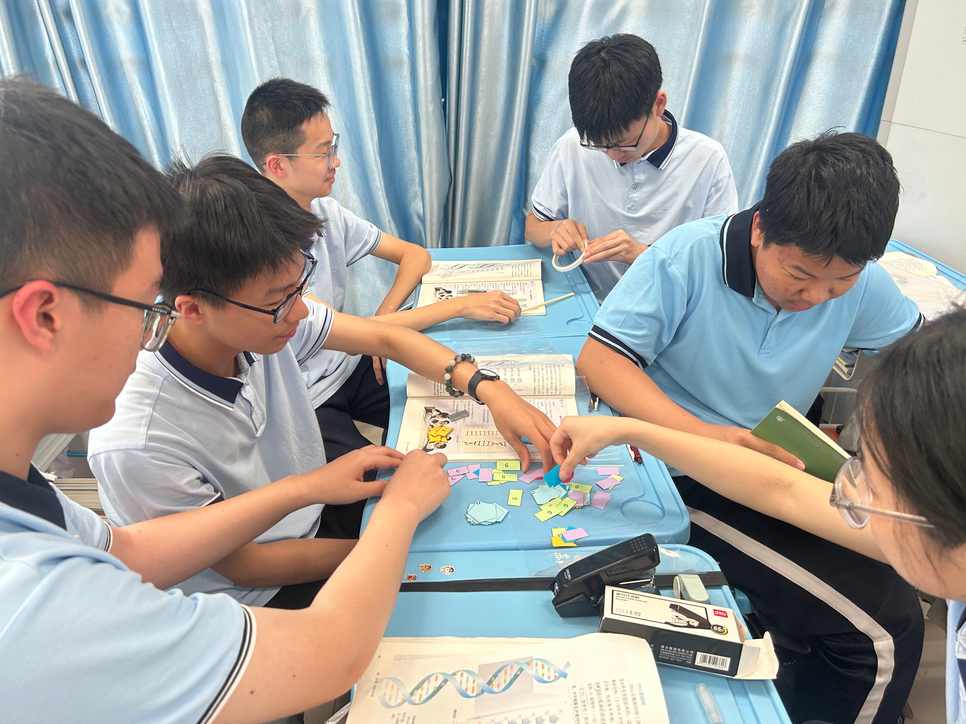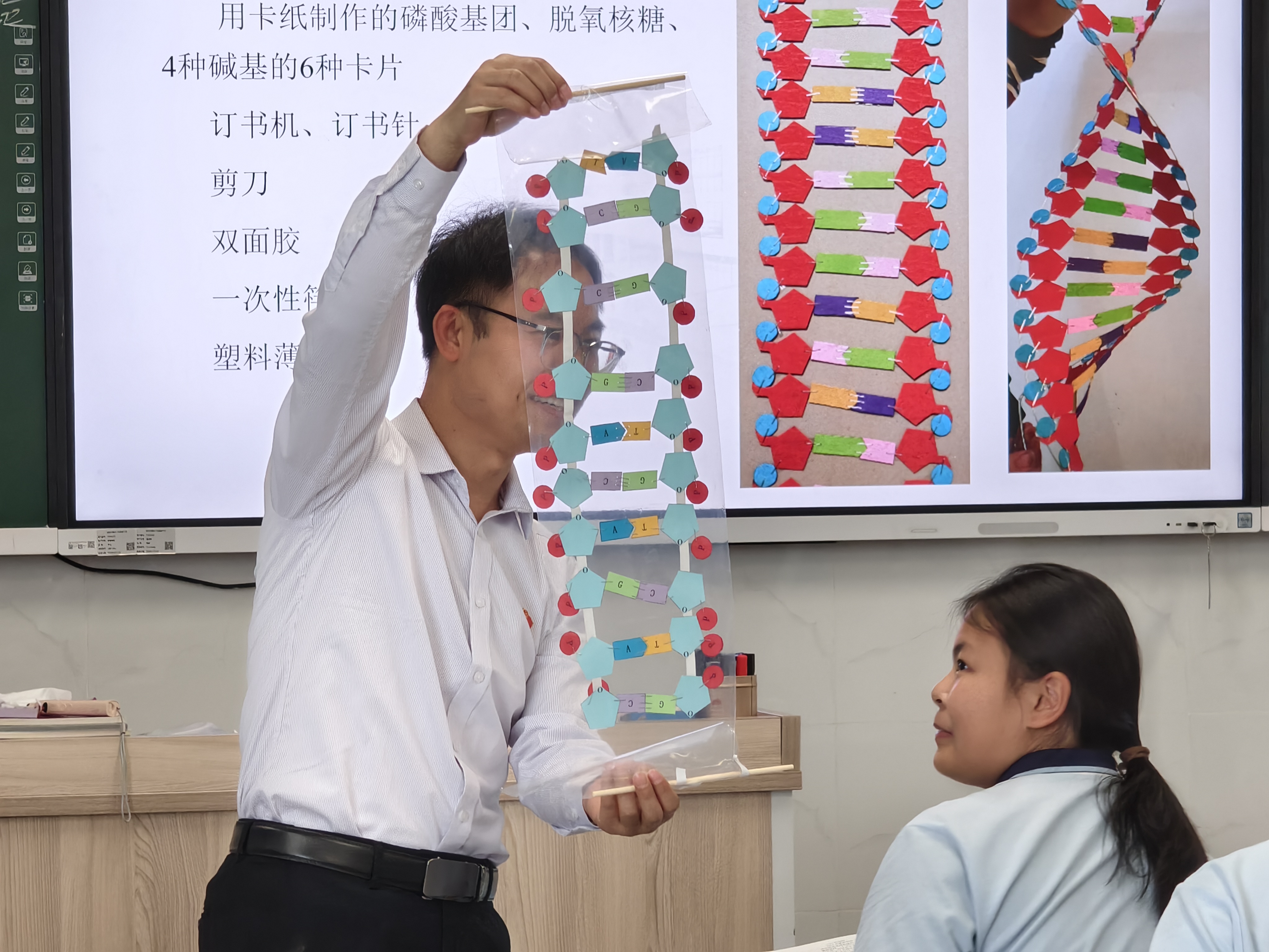 “原来DNA结构的发现藏着这么多智慧!”在“畅所欲言”环节,学生们围绕科学家成功的原因热烈讨论,纷纷表达对科学精神、科学方法的理解。最后的模型制作环节,学生们动手搭建双螺旋结构,在实践中真正实现了从“听知识” 到“探知识”的转变。