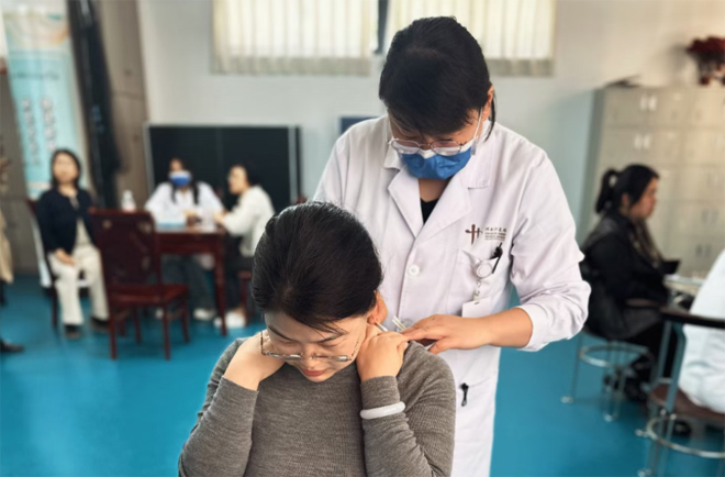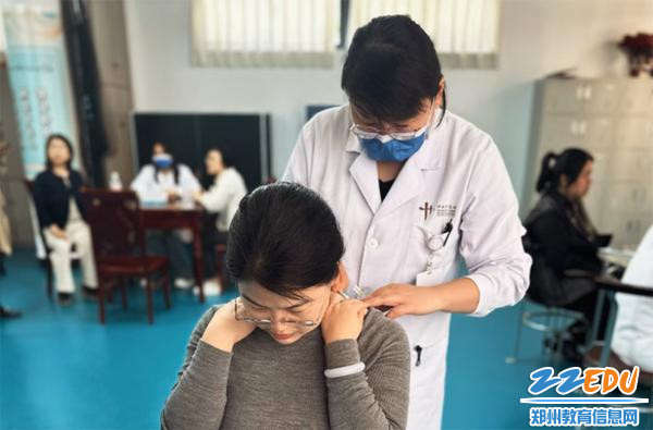 活动现场秩序井然、氛围浓厚,广大教职工踊跃参与、反响热烈。大家提前到场、有序排队,积极咨询问诊。来自河南省中医院的专家及护师团队以专业素养和耐心态度,为教职工提供一对一精准服务。针对教职工群体高发的颈椎腰椎劳损、关节不适、亚健康等问题,专家们通过中医特色理疗手法进行针对性调理,有效缓解长期伏案工作带来的身体酸痛与不适。