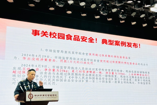为规范校园食堂食品安全管理,提升食堂工作人员专业素养和操作规范,守护师生饮食健康,4月17日下午,郑州市商贸管理学校邀请郑州市管城区市场监督管理局航海东路市场监督管理所所长卢东风,为全体食堂工作人员开展食品安全专题培训,学校总务处副主任娄季秋及食堂全体从业人员参加培训。