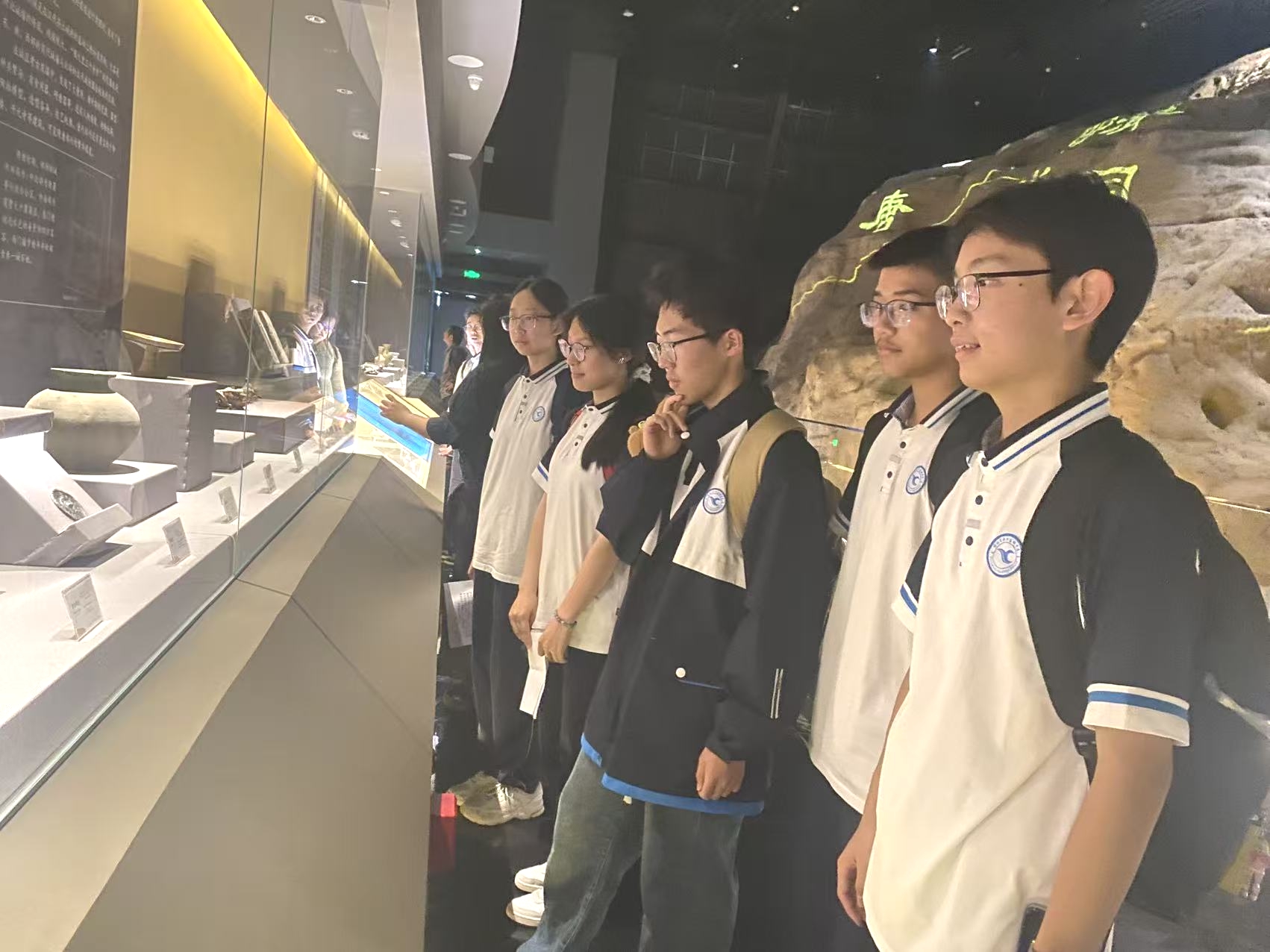 同学们观看商代出土文物