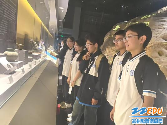 在郑州商都遗址博物院,同学们有序参观馆藏青铜器、陶器、玉器等珍贵文物,认真聆听千年商都的历史讲解。“商邑翼翼,四方之极”,《诗经・商颂・殷武》描绘的商都盛景,在文物与历史图谱的映衬下鲜活可感。大家细致观摩文物细节、系统学习商代历史文化,全面认识郑州作为商代早期都城的重要历史地位,深切感受黄河文化的博大精深,民族自豪感与文化认同感进一步增强。