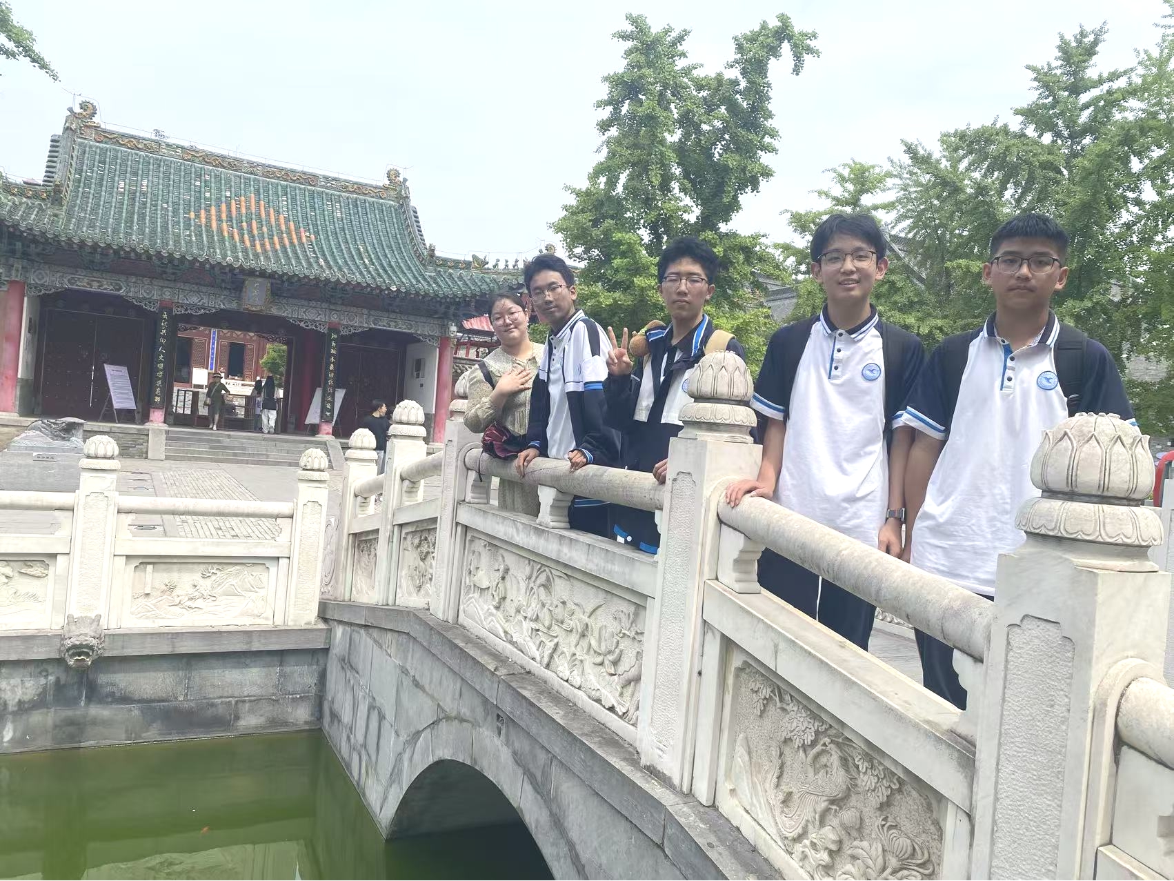 同学们踏上泮水状元桥