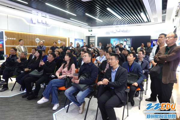在一楼学校智慧大脑数据中心,学校大数据中心主任梁广志围绕智慧校园运行作详细介绍。他以师生图书借阅、日常行为管理、教师备课教研、学生早餐与生活服务等真实场景为例,生动展示“一脑三中心”如何实现教学、管理、服务一体化数据赋能,让校长们直观感受智慧化、精细化、人本化的办学氛围。