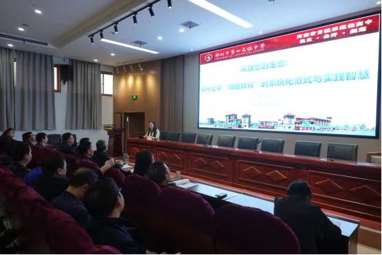 参观结束后,研修班学员齐聚学术报告厅,认真听取郑州市第七高级中学校长黄玉杰题为《从理念到生态:郑州七中博雅教育的系统化范式与实践智慧》的专题讲座。黄玉杰结合自身博士求学经历与学术研究收获,以先进教育理论为支撑,从何为教育、何为学校、何为校长三个问题切入,深刻阐释教育的本质是促进人的全面发展,她结合郑州市第七高级中学办学实际,系统解读“家国情怀、博学多识、素养高雅、思维创新”博雅教育理念,全面分享学校以系统化思维构建课程、教学、管理、评价、文化、环境全链条育人体系的实践路径与丰硕成果,理论深度与实践温度兼具,引发全体校长强烈共鸣。整场讲座既有教育理论的深度,又有办学实践的温度,既有顶层设计的高度,又有落地执行的细度,为来访校长提供了可借鉴、可复制的系统化育人范式。