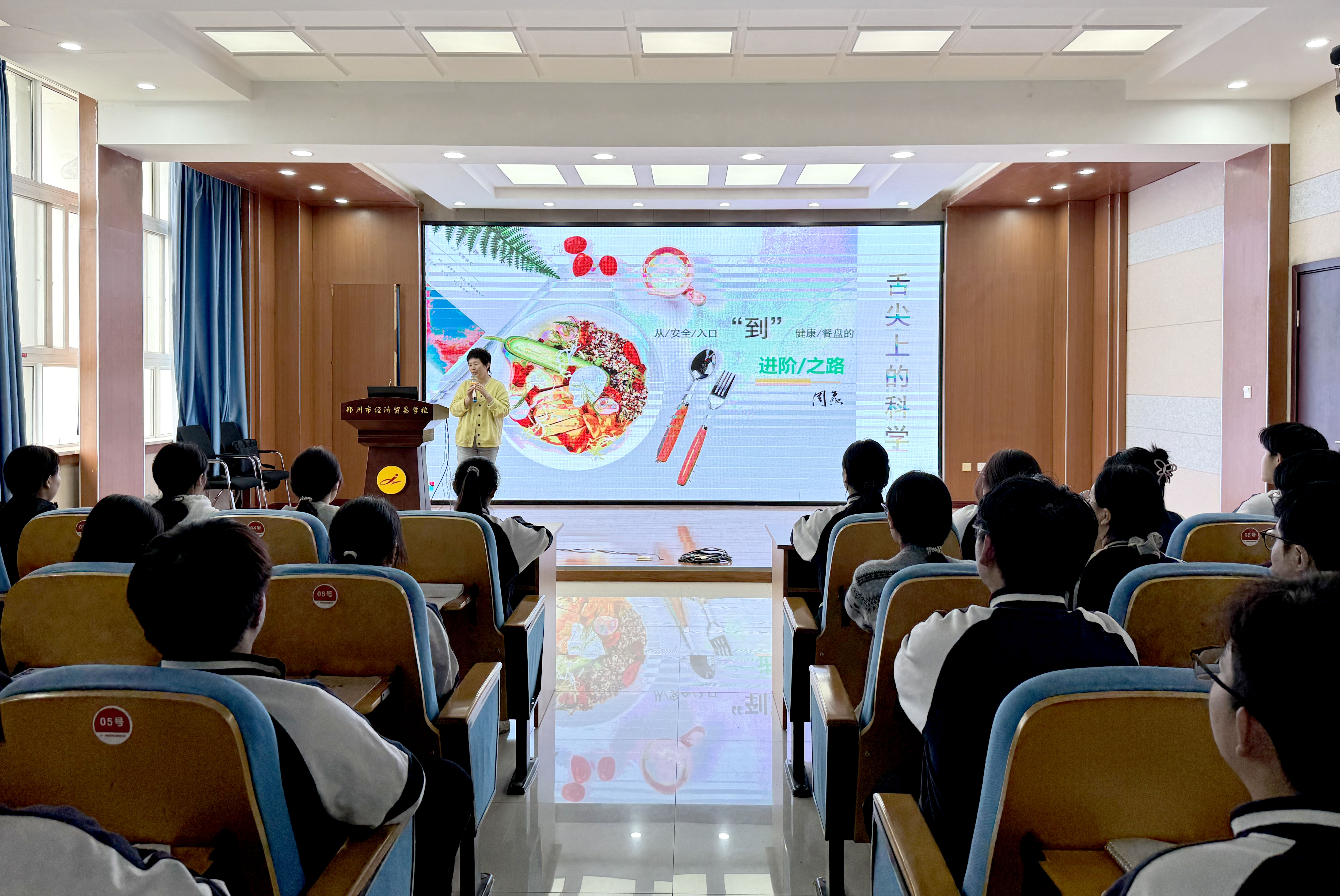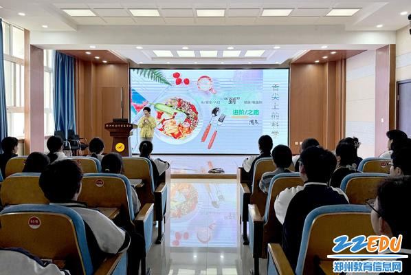为全面落实“健康第一”教育理念,筑牢校园食品安全与营养健康防线,4月22日,由郑州市教育局主办、郑州市教育科学规划与评估中心承办的郑州市2026年健康素养提升活动在郑州市经济贸易学校开展。此次活动以“舌尖上的科学”为主题,特邀郑州市第二人民医院营养科主任周燕担任主讲,为广大师生送上了一堂兼具科学性、实用性与趣味性的健康科普讲座。