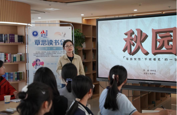 硝烟散尽,敬畏生命;炊烟升起,坚韧如草。姚笑笑老师以《西线无战事》为题,用冷静克制的语言带领大家走进雷马克笔下的战场,还原了主人公保罗从热血参军到彻底幻灭的心路历程,提醒和平中的人们敬畏生命、珍惜当下;赵梦怡老师则带来杨本芬奶奶的《秋园》,以温婉坚定的语调讲述了一位普通中国女性在百年风雨中如野草般顽强求生的故事,引导大家思考命运重压下尊严、爱与希望的力量,这份平凡中的英雄主义打动了在场师生。