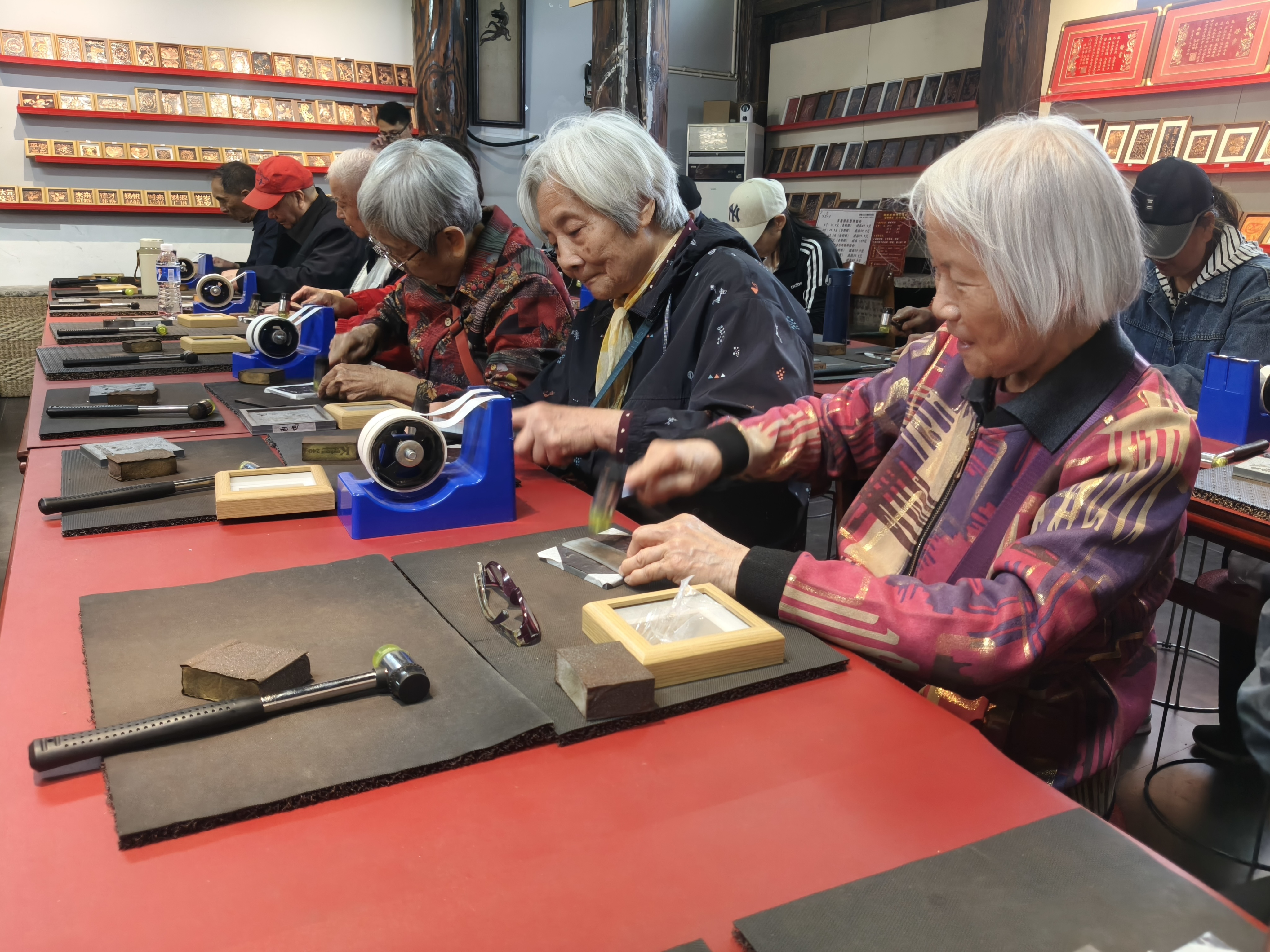 老教师们体验非遗项目——铜版年画