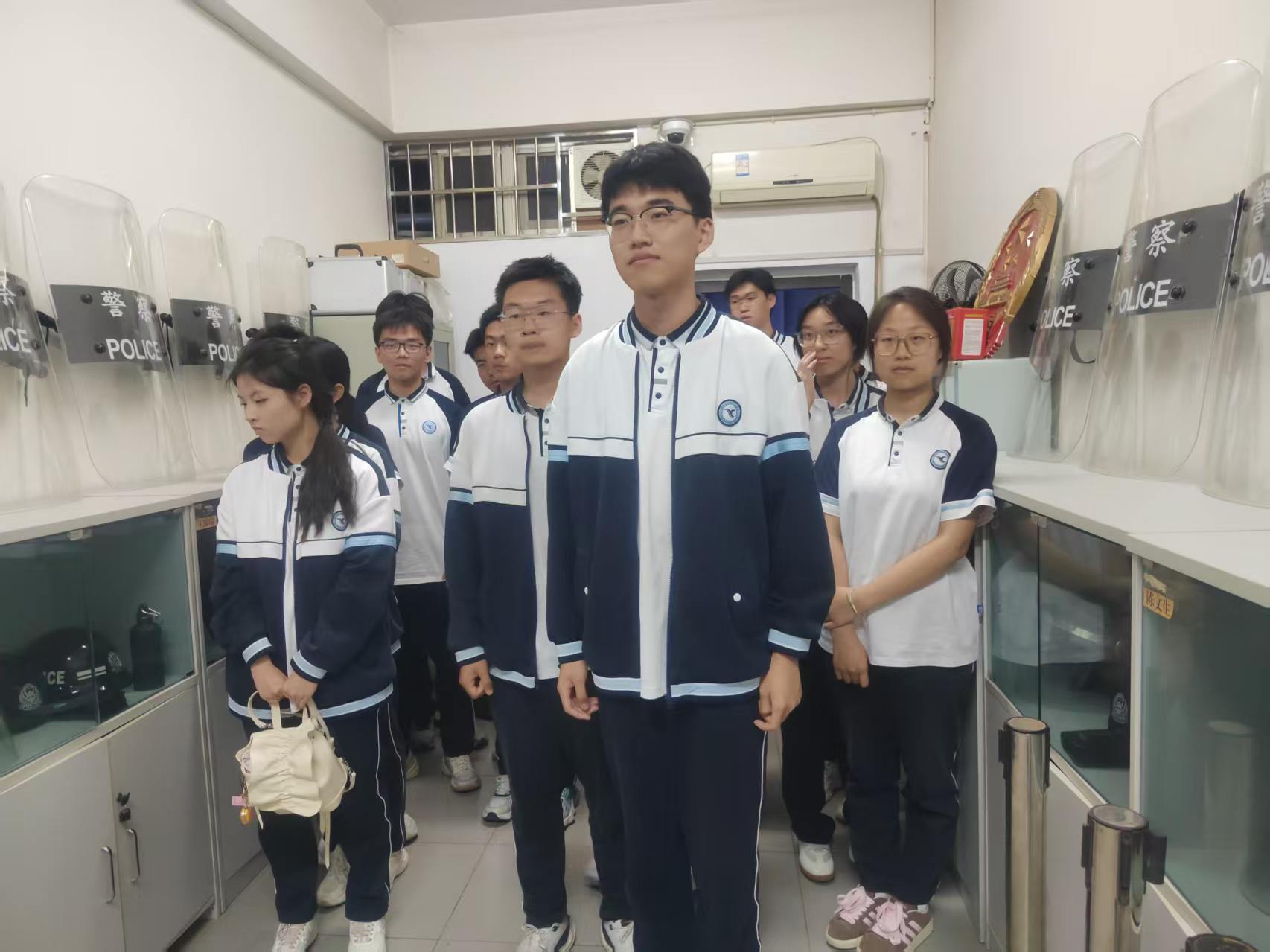 随后,法警带领同学们近距离接触执法装备,详细讲解其功能、使用规范及法律依据,让大家了解法警职责,感受司法工作的严谨神圣。