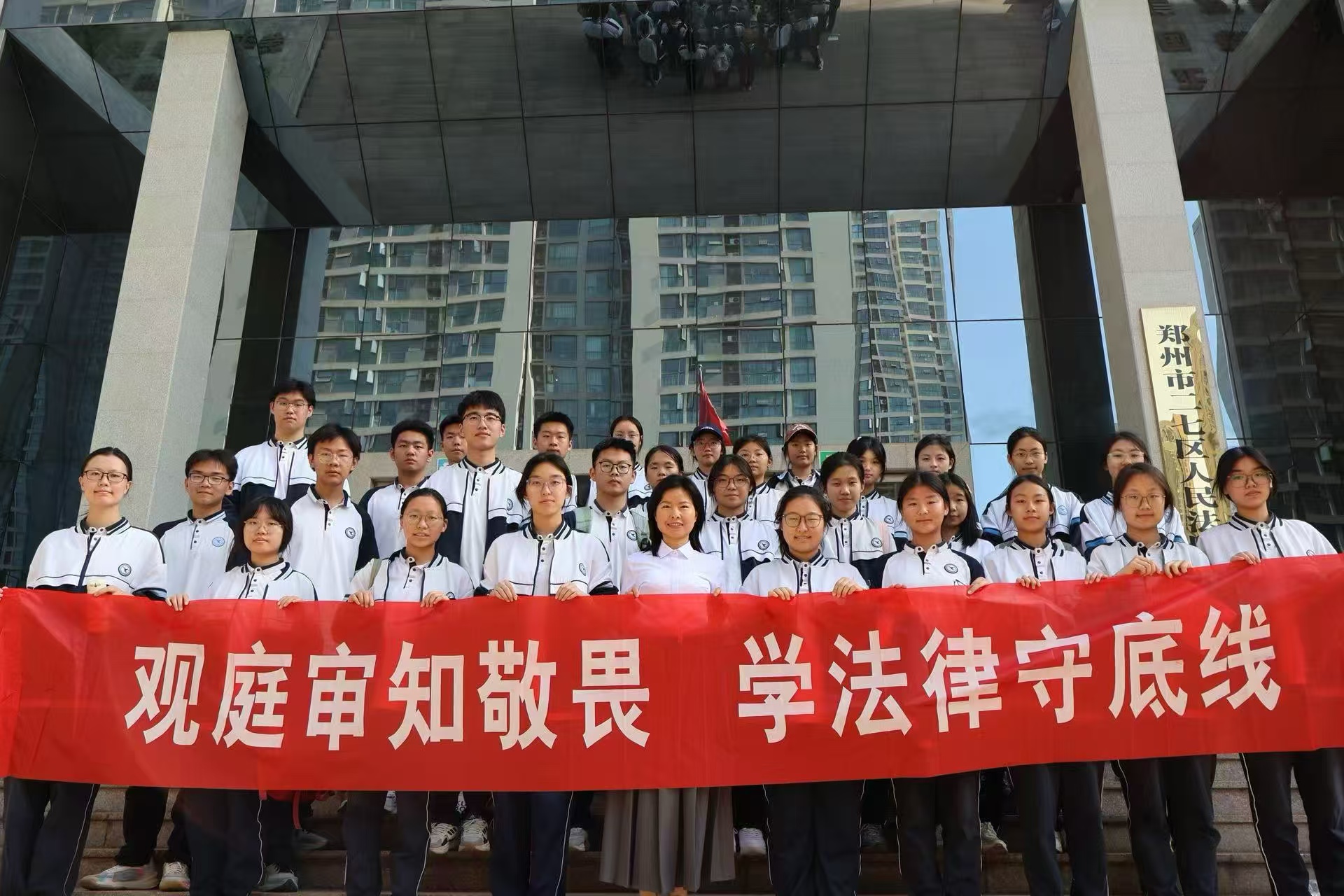 2026年4月24日下午,郑州市第六高级中学领导力学生社团成员及思政学科代表,在指导老师乔华带领下走进二七区人民法院,开展“观庭审知敬畏,学法律守底线”的主题法治实践活动,沉浸式感受司法威严、学习法律知识。