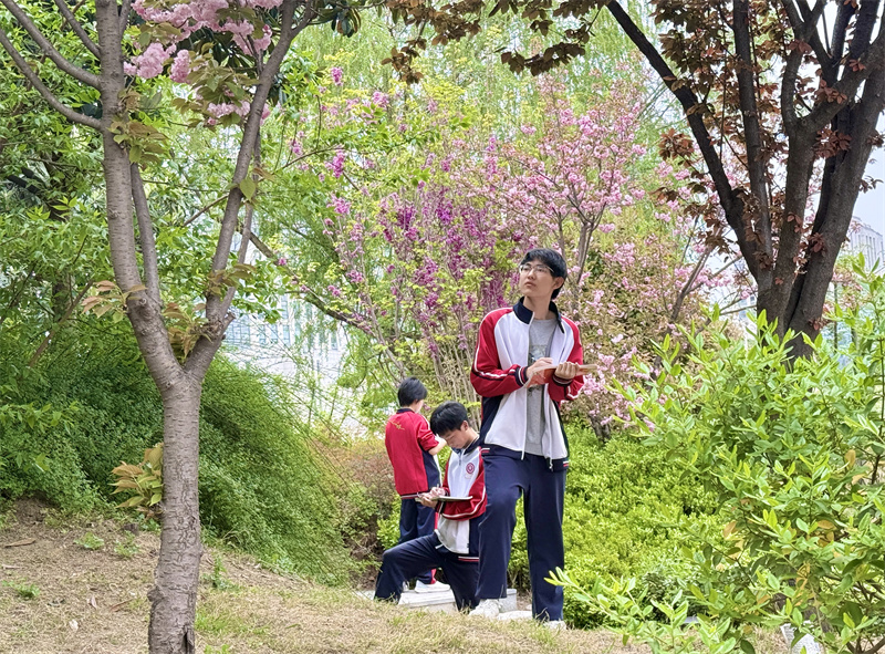 暮春时节,芳菲未尽。2026年4月28日,郑州市实验高级中学依托校书画社专业力量,开展高一年级校园春日写生活动。在美术教师陈朝勇的现场指导下,学子们漫步校园维实亭、书香苑,以画笔为媒,捕捉暮春校园的灵动景致,在春日美景中舒缓学业压力,提升审美感知与艺术表达能力。