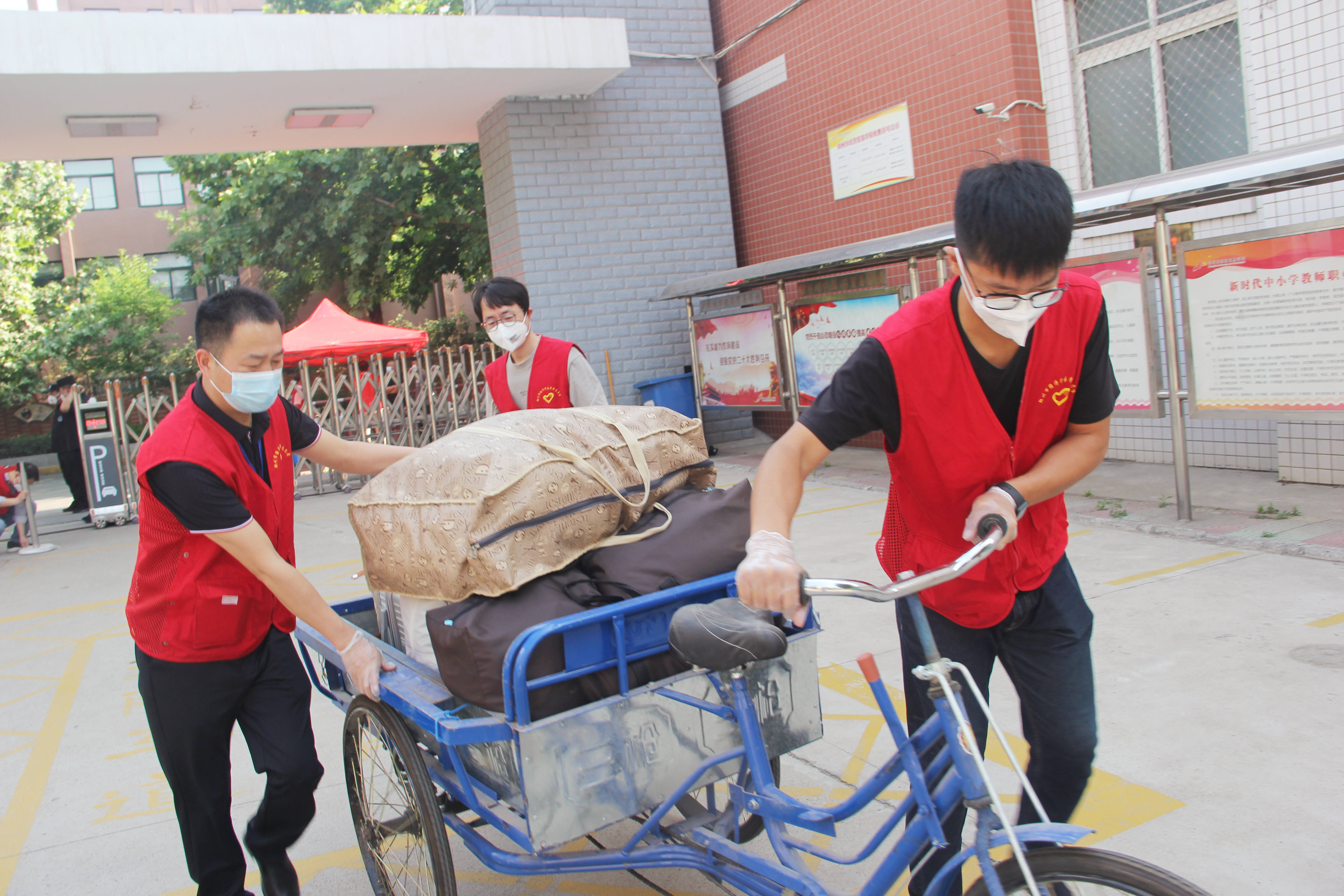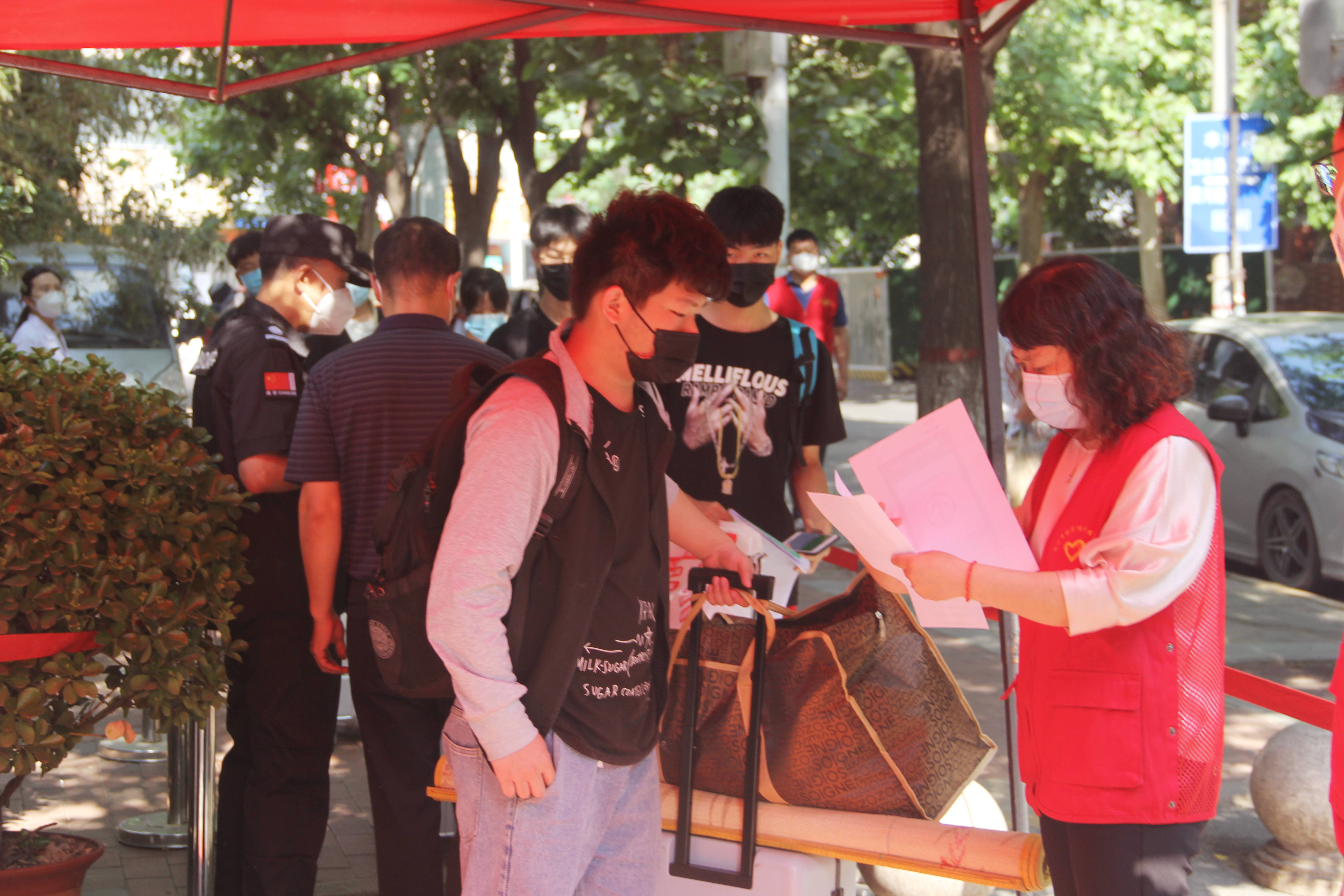 23日一大早,志愿者们便在校园门口扎起红帐篷、拉起警戒线,消杀组、测温组、行李组等等各就各位,按照分工井然有序地站到自己的岗位上,返校前学生们按照学校要求每日钉钉健康打卡,实时监测确保提前返郑、不离郑。查看健康码、行程码,测量体温、行李消杀.......在这每一步严谨的检查里,还有着不少温情的画面,老师们细心叮嘱学生带好个人所需生活物品,身上有没有穿戴或者佩戴含有金属物品,如果有则提醒学生及时购买,准备好备用衣物及鞋子,以积极的心态面对返校后的学习生活,以最佳的状态迎接高考!