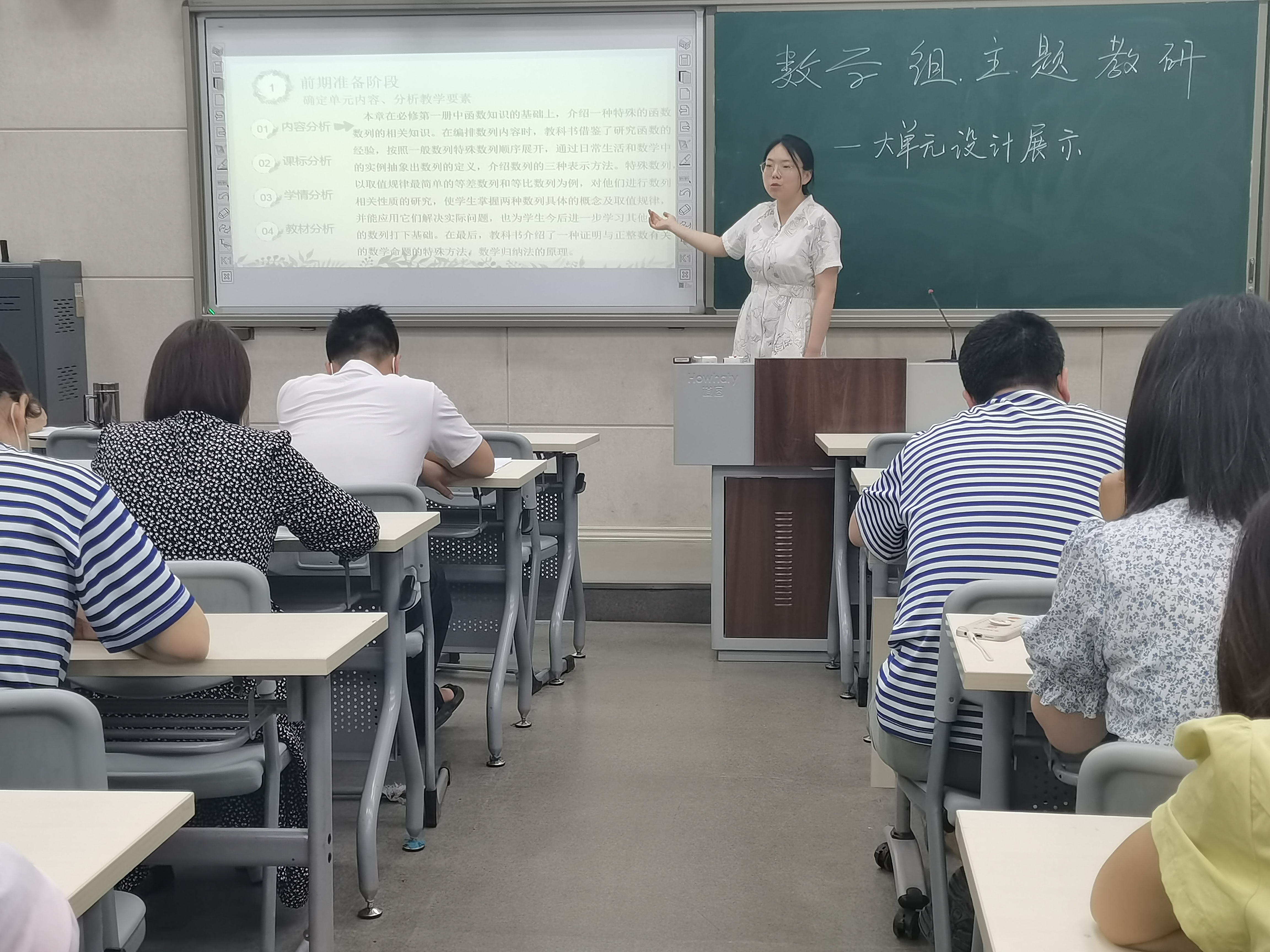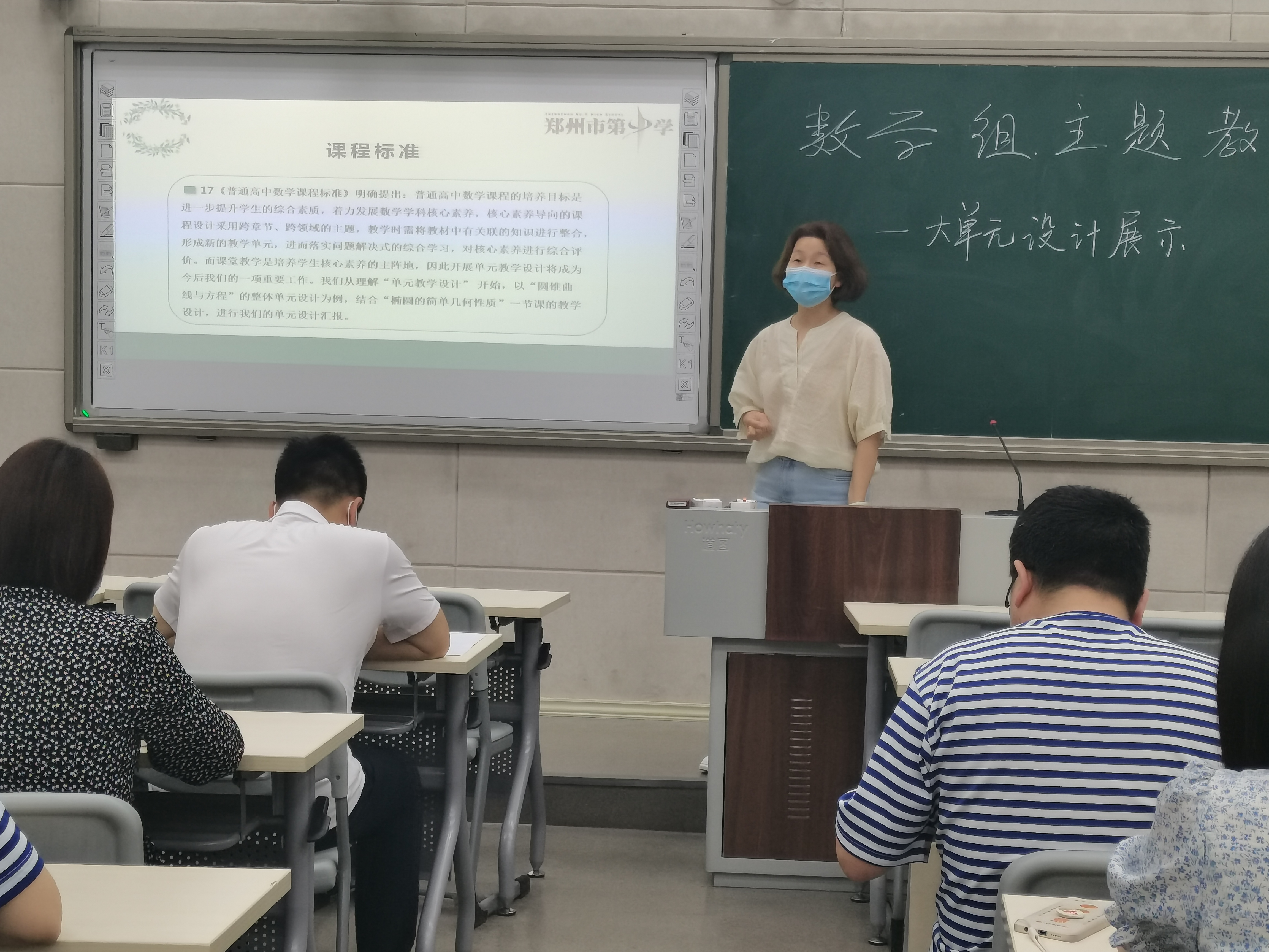 为更好地促进数学核心素养的培养,郑州市第九中学数学学科组于2022年5月25日下午,在执中楼一楼高清录播教室,举行了数学组大单元教学研讨会,此次研讨会由数学教研组组长张海廷老师组织举行。为了更好地适应新课程标准中对数学核心素养的要求,单元设计在新课改的要求下地位变得越来越重要。单元设计的有效运用可以提高课堂效率,学生学习知识的难度也会降低,学生的学习效率也会得到提升。
