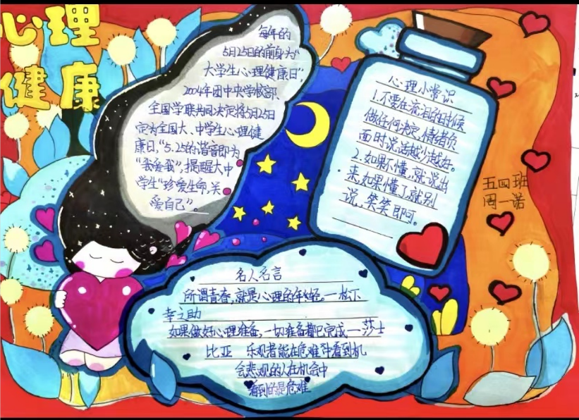 春晓小学2022年心理健康月绘画活动之心理手抄报:孩子们通过查阅资料、请教老师、父母,搜集学习到感兴趣的心理健康小知识、小常识,制作出一份份精美的手抄报,既展现了自己的风采,又为其他同学宣传普及了有趣的心理健康知识。