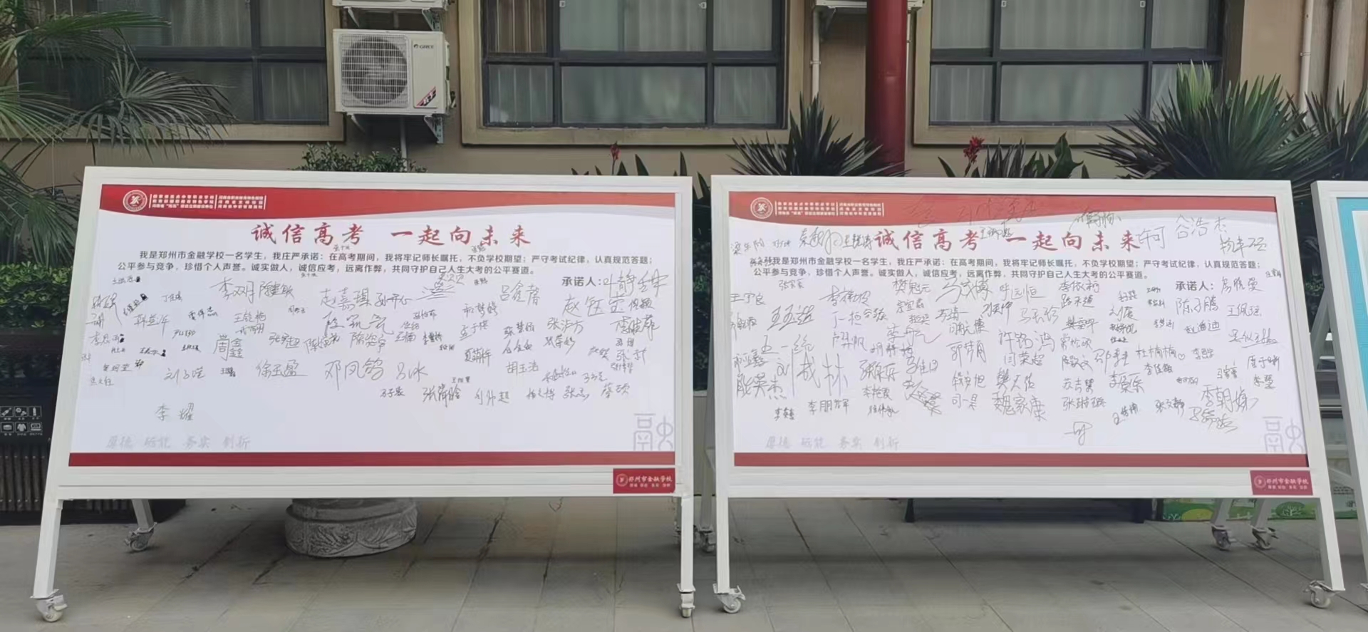 为弘扬诚实守信的社会道德风尚,防止考试违规现象发生,引导学生以良好的心态,最佳的状态迎接高考,5月27日,郑州市金融学校举行“诚信高考,一起向未来”主题教育活动。