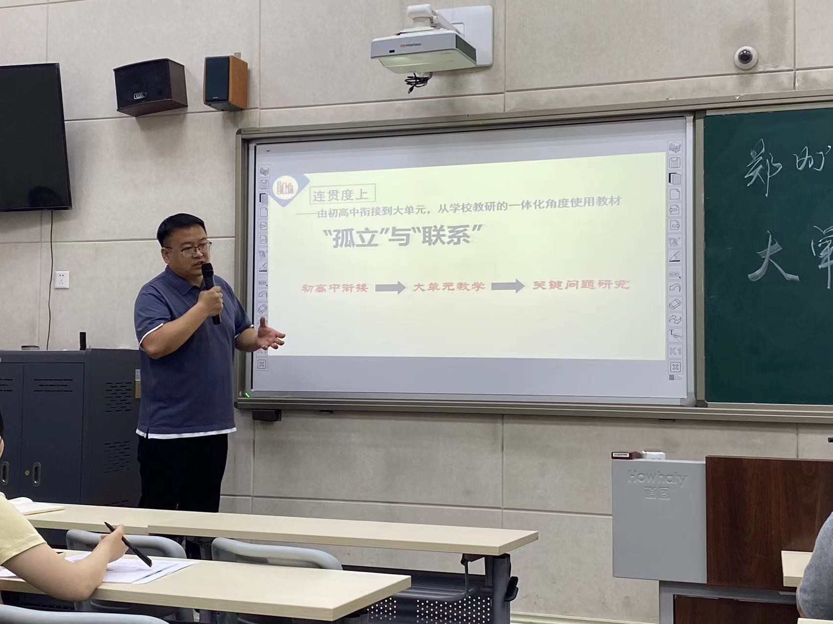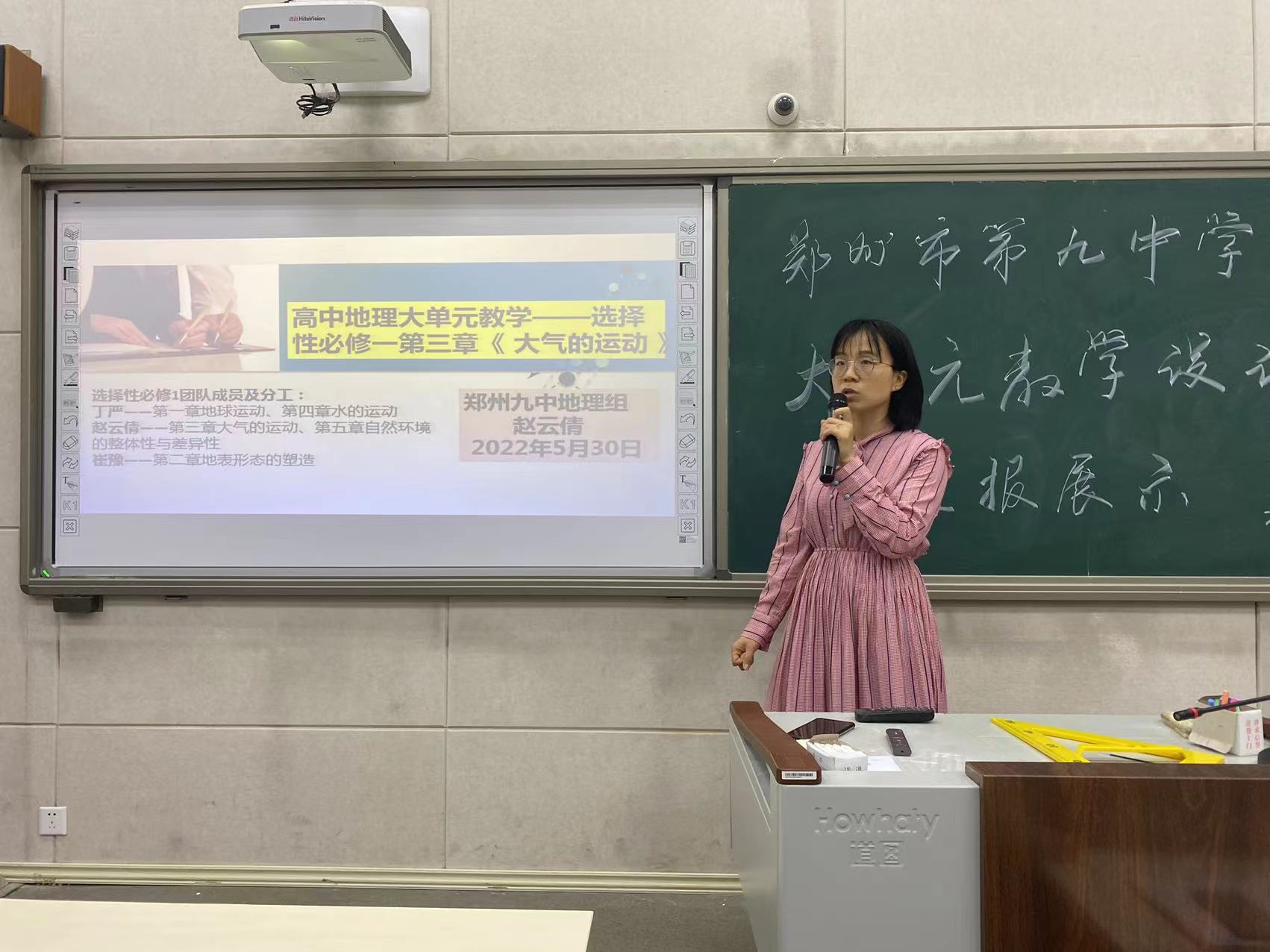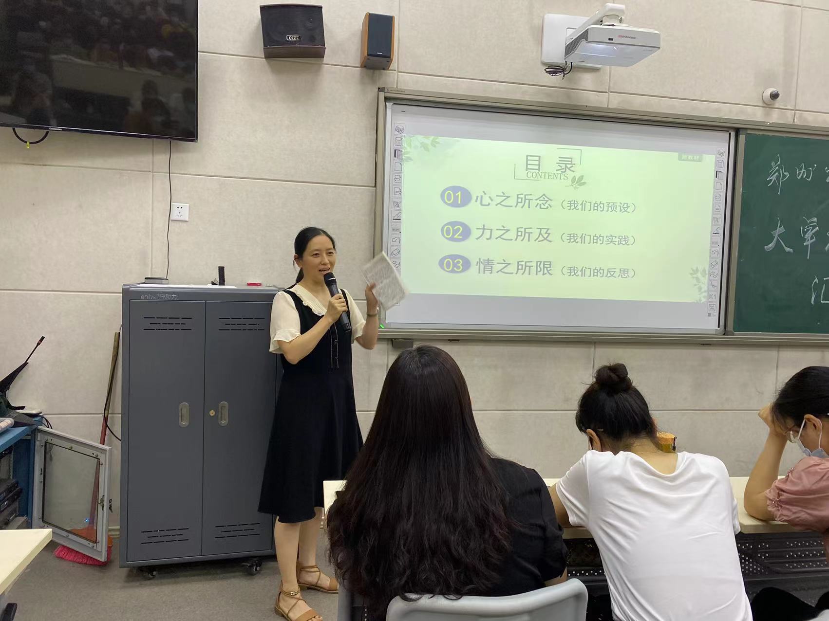 为了帮助教师不断适应变化的教情学情,郑州九中每学期都会进行主题教研活动。大单元教学设计作为本学期的教学重点,在2022年5月30日下午迎来了最终的总结汇报。本次主题教研活动由教师发展处主任周延军主持,副校长陈晓出席会议,全体文科组教师参加会议。