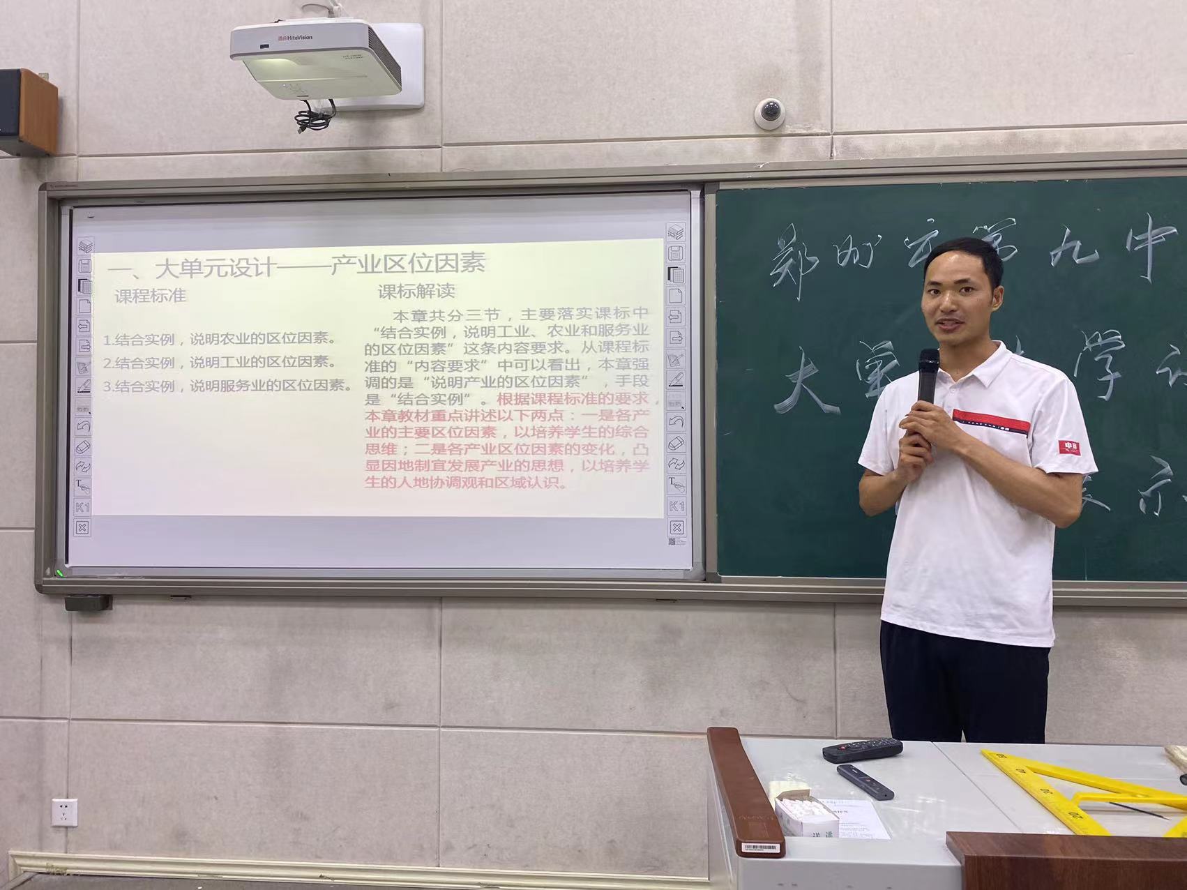 地理组教师牛豪阁和赵云倩老师作为地理组教师代表进行发言展示。两位老师根据不同的章节内容进行大单元教学的设计。牛豪阁老师根据教材变化,将案例分析引入教学环节过程,以案例作为导向,连贯教学内容,并最终形成完整的问题链和思维导图,降低学生的学习难度。赵云倩老师则从学生的知识基础、学习能力、生活体验等多个层面入手,结合教材内容,形成层次感分明的教学目标,从低级到高级层层递进,进行启发式教育。两位老师在教学过程中,都注重学生的整体性和差异性特点,大单元教学设计有理有据。