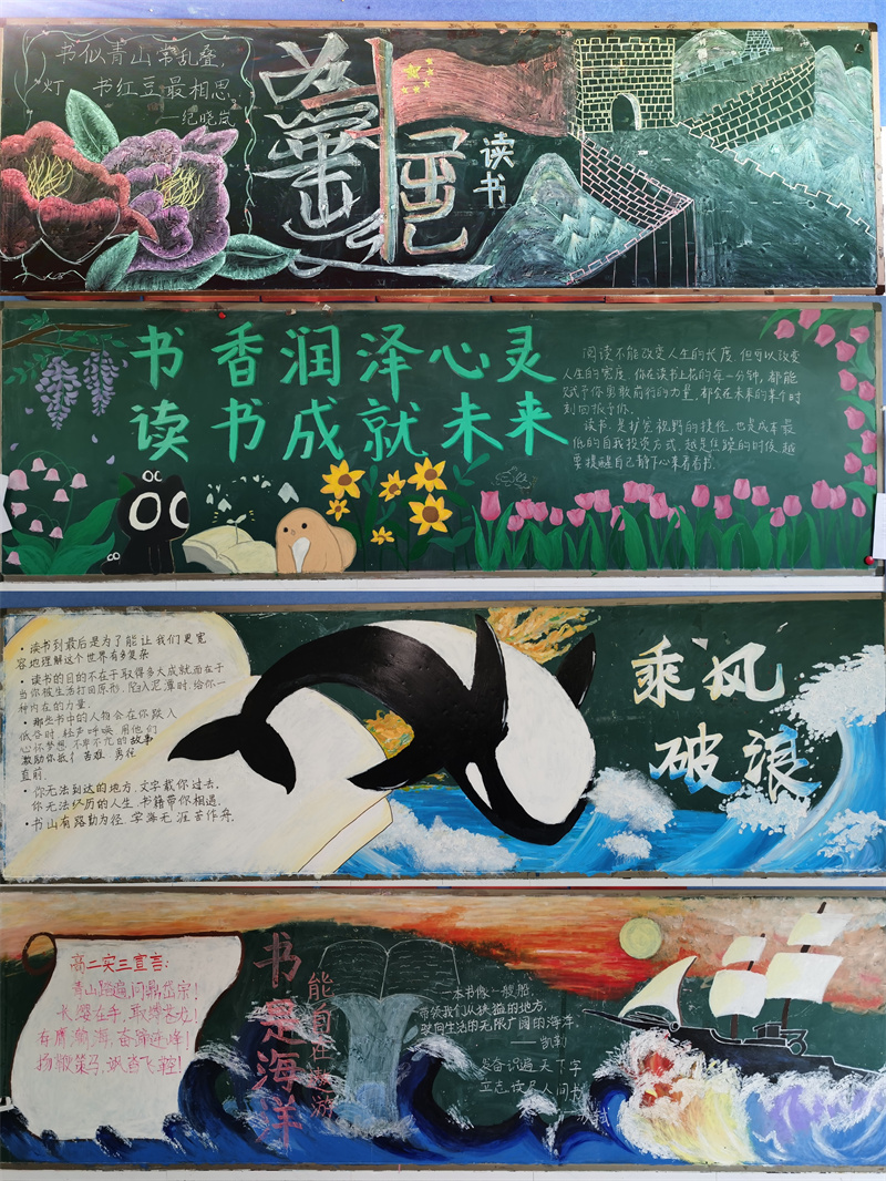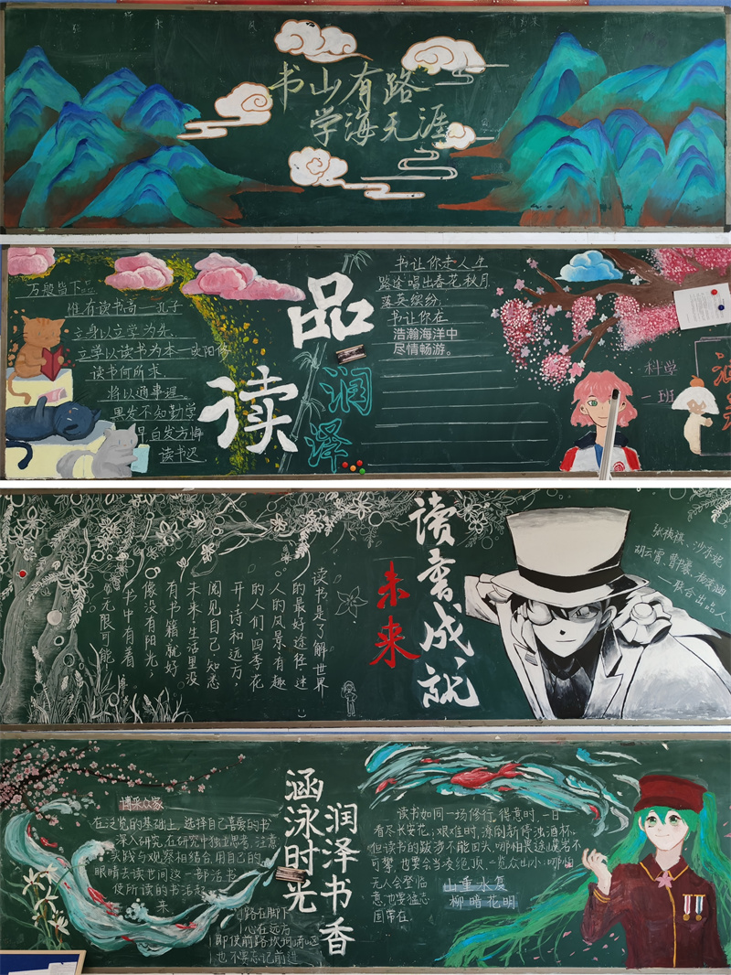 花开的四月,是读书的季节,为丰富校园文化,用明丽的色彩和充满活力的图画激起同学们的读书热潮,发挥黑板报在校园文化宣传方面的主阵地功能,4月底,郑州市实验高中高二年级开展以“书香润泽心灵,读书成就未来”为主题的黑板报评比活动。