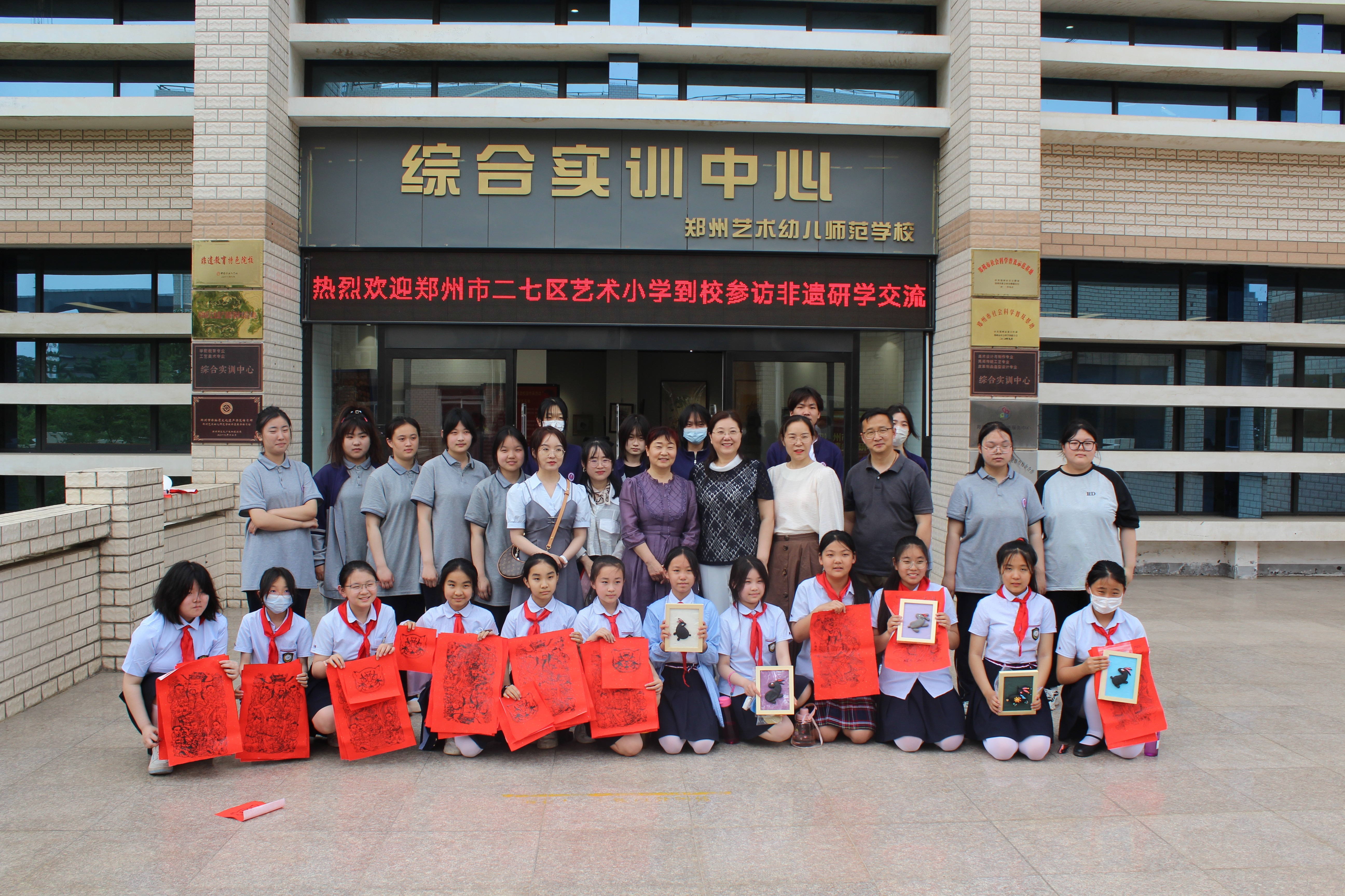 为传承非遗优秀文化,切实提升学生的民族自豪感和文化认同感,促进校际间交流提升,助力“双减”政策在校园落地见效,5月16日,郑州市二七区艺术小学师生来到郑州艺术幼儿师范学校非遗馆开展研学活动。