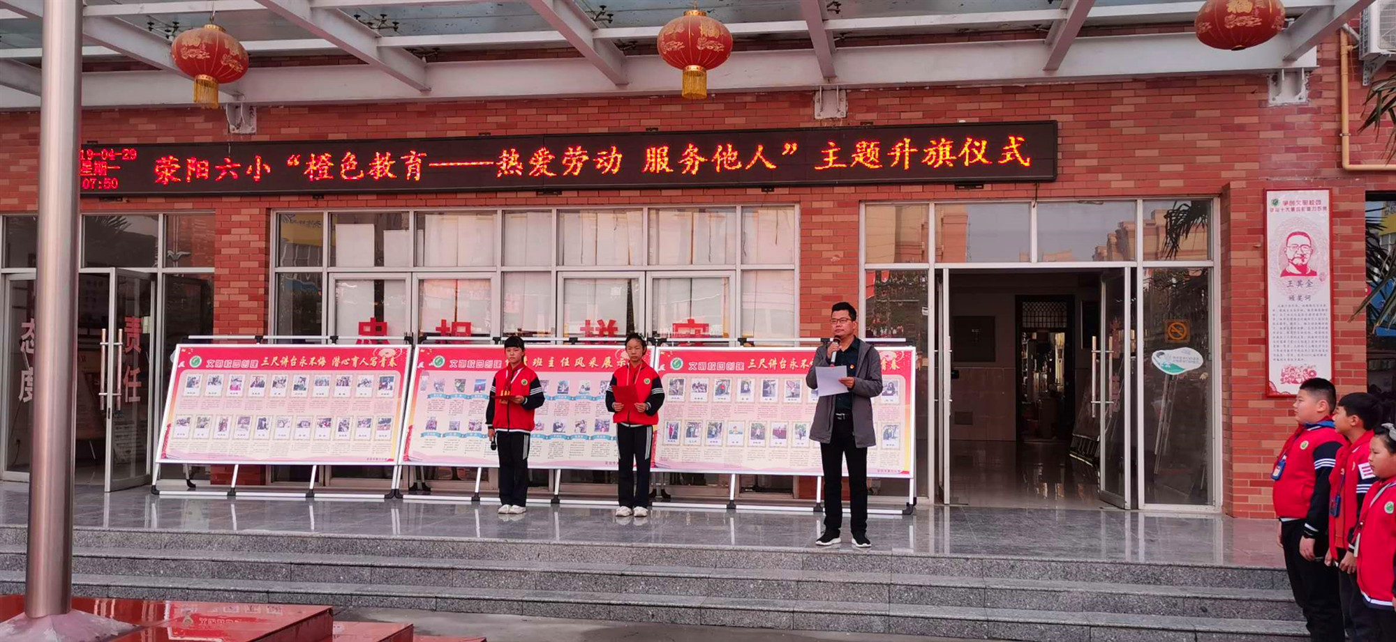 荥阳六小全体师生利用升旗仪式,举行了 “热爱劳动·服务他人”主题教育活动,学生代表倡导大家热爱劳动,从身边小事做起,帮助他人。副校长秦光辉呼吁全校学生在学校做个爱劳动、服务他人的好学生;在家里做个爱劳动的好孩子,养成良好的劳动习惯。
