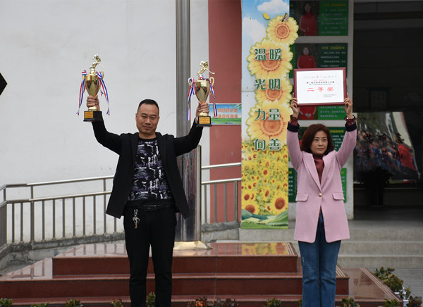 书院河路小学校长郭雪红为轮滑队辅导员赵中权 老师、王海珍老师颁奖