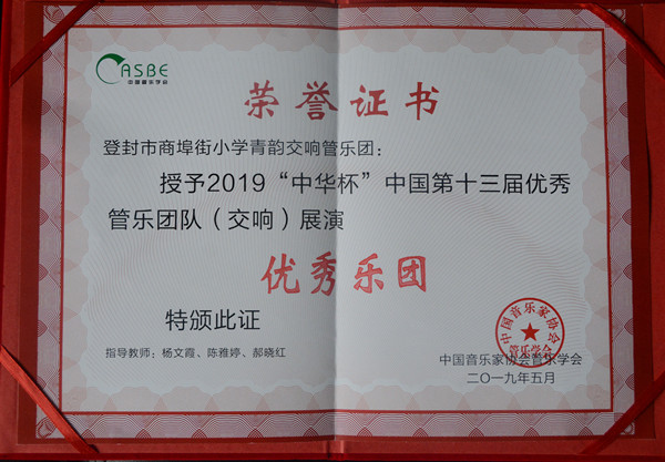 5月3日至5日,登封市商埠街小学青韵交响管乐团赴上海参加了“中华号角——2019上海之春国际音乐节管乐艺术节”暨“中华杯”中国第十三届优秀管乐团队展演,再次荣获“优秀乐团”称号。