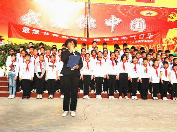在背诵中每位学生都能以饱满的热情,朴实的语言,洪亮的嗓音,慷慨激昂的情调,展示了自己的背诵功底。集体背诵,场面气氛活跃,各班同学在舞台上各显神通,用洪亮的童声唱诵着传统古诗词,传递着古诗词的神韵,他们稚嫩的面容表情,丰富的情感,不时博得台下师生的一次次心中共鸣的掌声!