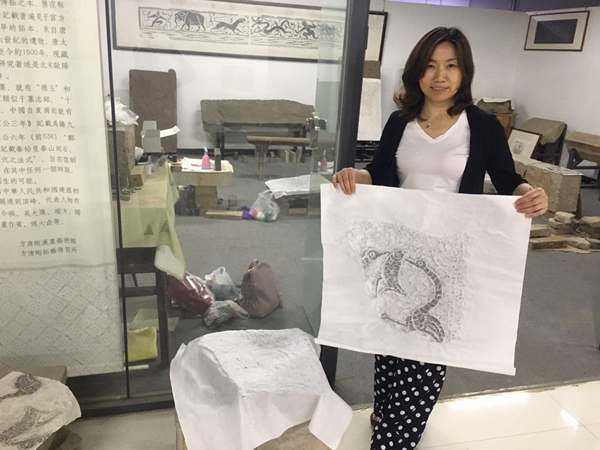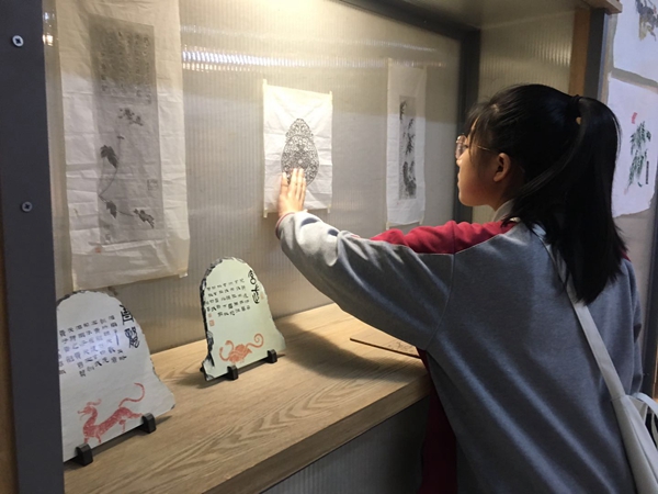 方清刚是知名汉画收藏家,他成立了汉画艺术馆,旨在使汉画课程和传拓技艺扎根在中原沃土之上。为传承中华文化,方清刚热心培训了一批爱好汉画的志愿者。11日上午,艺术馆的志愿者热情接待了来参观学习的老师和孩子们,方老师亲自解读汉画知识,传授拓印技艺,他深厚的文字功底,儒雅的学者风范,风趣的史学语言,让大家受益匪浅。同学们在体验拓片过程中深有感触,思贤中学八年级学生苏清扬说:“一个拓片需要重复多次,甚至50多次,力度要拿捏得当,湿度要不增不减,一切都要适量适度,刚刚好,要不厌其烦、一丝不苟、坚持不懈、小心翼翼,象征一个人坚毅的性格、高贵的品质。”师生们参观了汉代流传下来的书画、浮雕、以及拓印艺术品。同学们在这里不仅体验了“拓印”这一传统技艺的过程,还了解了著名的汉画文化。“拓印中我最喜欢的就是那幅彩色的‘飞天’,裙摆飘飘,脚踏祥云,纤纤玉手握着一只如意,眼睛好像会说话。当我仔细凝望这幅画时,映入眼帘的不仅仅是一个倾国倾城的仙女了,那白色的浪花就是中华民族智慧的结晶,艺术的灿烂。” 张登程同学兴奋地说。