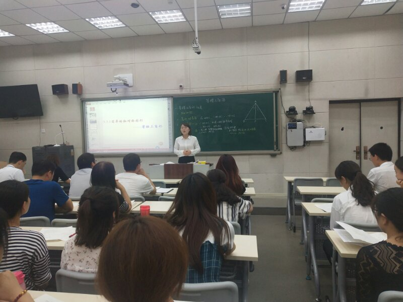 为了进一步加强教师间学习与交流,切实推进高效课堂建设,2019年5月20日下午,我校举行全校教师听评课活动。数学组教师韩磊为我们呈现了一节扎实又生动的示范课《简单的轴对称图形——等腰三角形》。全校老师及校领导参与听评课。