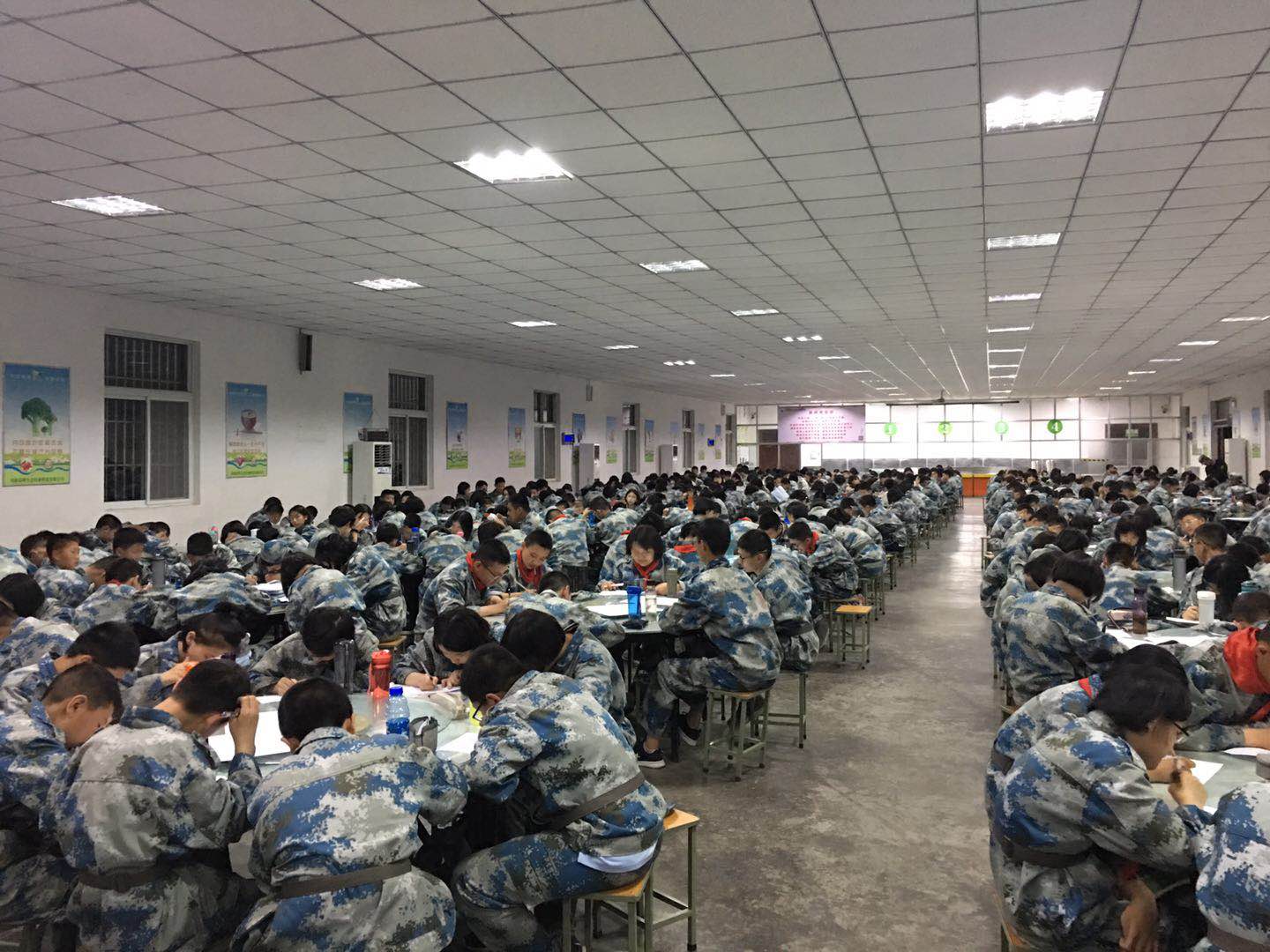 整个白天的实践训练结束。晚饭后,就是晚自习。老师们精心为同学们准备了复习备考资料。在巨大的食堂大厅里,灯火通明,同学们六人一桌,围桌而坐,静悄悄学习,只能听到同学们笔尖传来的沙沙声。六百多位同学安安静静地做着试卷,这种别开生面的场景,令人印象深刻,这样难忘的经历,让学生也记住这样学习的美好。经历一天的拓展训练活动,同学们的体能消耗了很多,但动静结合,在寂静的夜晚认认真真地做卷子,或思考或奋笔疾书,看着他们努力的样子,老师们都感到非常欣慰。