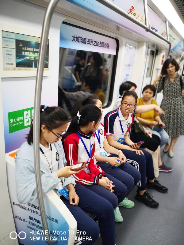 5月20日,郑州市轨道交通唯一的环形线路5号线正式开门载客,成为继1号线、2号线、城郊铁路后的第4条线路,标志着郑州市轨道交通“十+环”正式成网,由“换乘时代”迈向“网络时代”。满怀着激动和好奇,郑州七中八(6)班的青年志愿者走进明亮宽敞的地铁站大厅,进行参观体验。