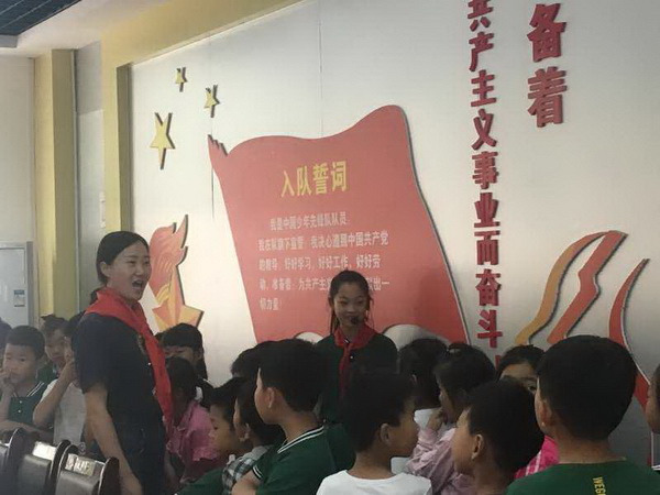 学校大队辅导员王志会老师带领着一年级的准少先队员参观了少先队室,让学生了解中国少年先锋队队史;认识了少先队的标志,知道红领巾、队旗、队礼、了解其蕴含的深刻含义,随后,通过组织学生画一画队旗、队徽、红领巾,教唱儿歌、做一件好事、写入队申请书等活动,让准少先队员对少先队有了更加深刻地认识。