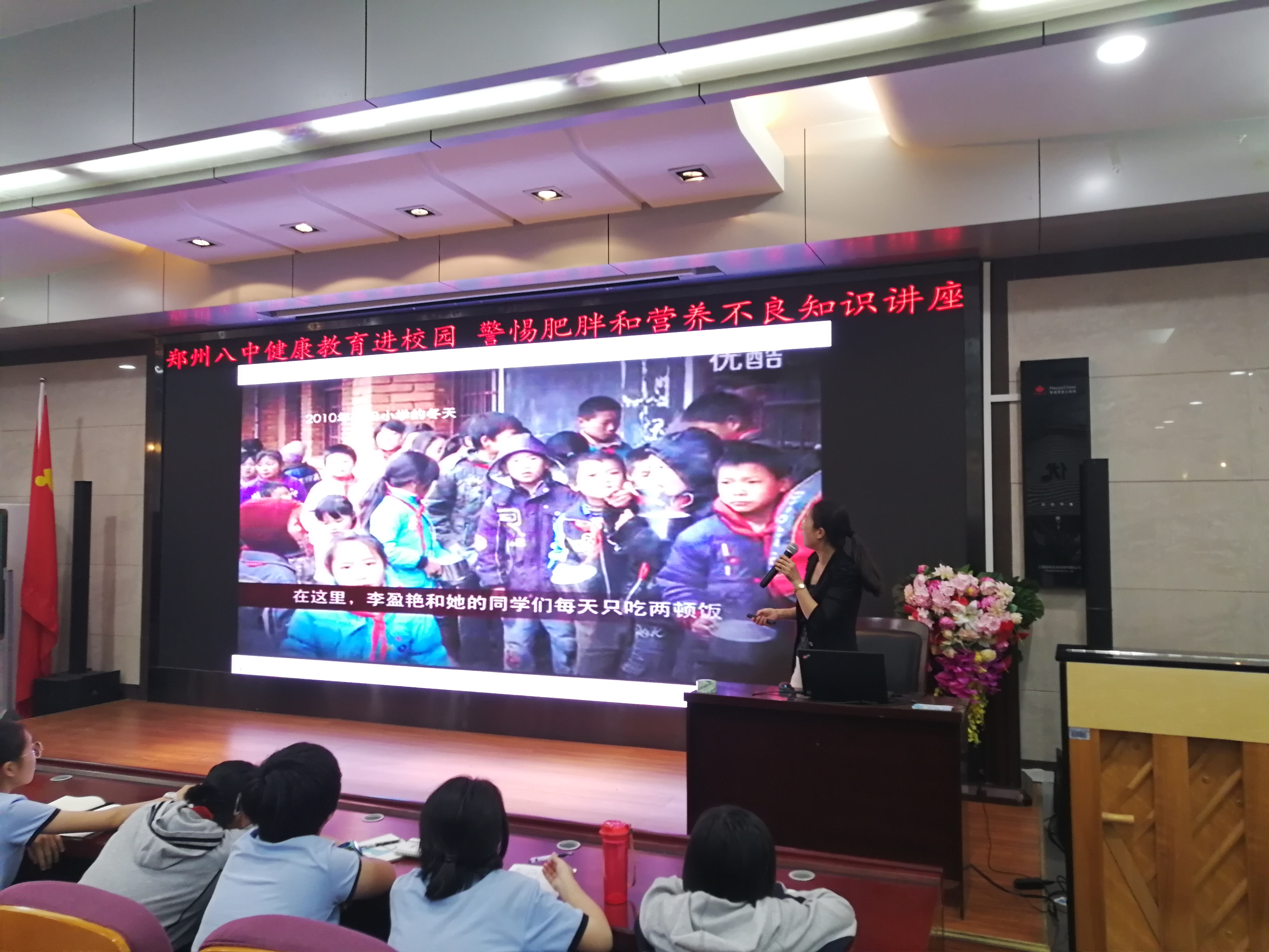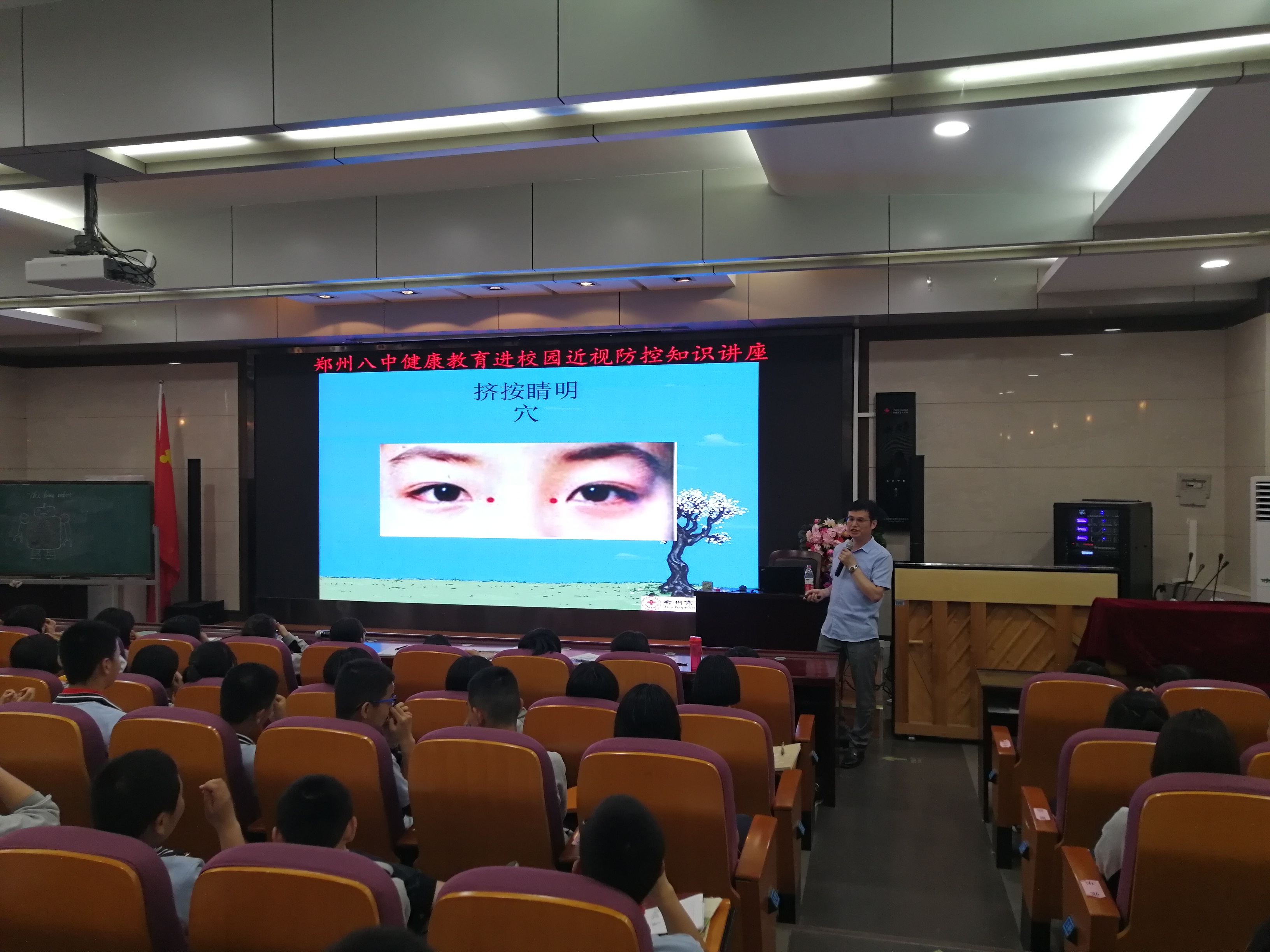 郑州八中举行预防近视、警惕肥胖和营养不良知识讲座。