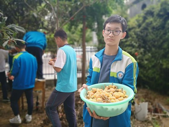 活动中,热心参与的学生们在校中心广场集合。在相关负责老师简单讲解了采摘注意事项与安全问题后,同学们分工协作齐上阵。同学们有的小心翼翼地把树枝拉下来进行采摘,有的在地上捡拾打落的枇杷,有的爬到树上采摘高处的枇杷……有序的分工合作加速了劳动果实的收获。没多久,一筐筐金灿灿的枇杷送到了各个教室,师生们品尝着酸甜可口的枇杷果,幸福之情溢于言表。