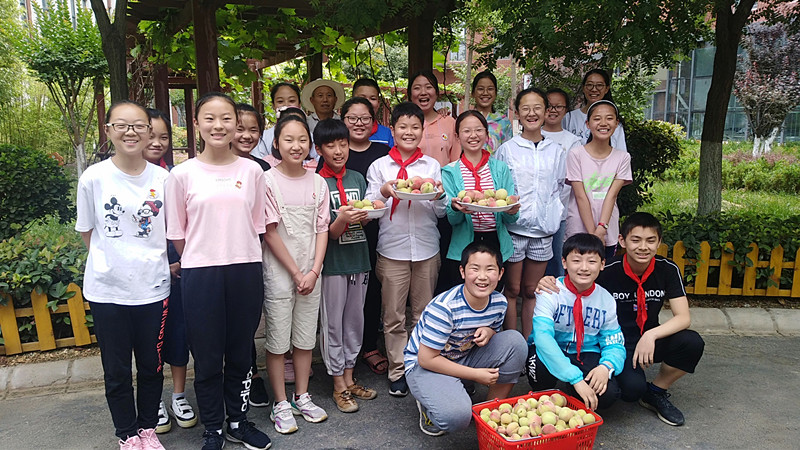 5月28日上午,郑州高新区外国语小学的毕业学子们来到学校硕果苑,进行了毕业离校课程的实践活动:摘取毕业林中的成熟鲜桃。