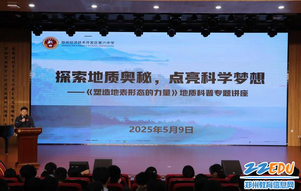 为了让同学们领略地质科学的独特魅力,拓宽知识视野,5月9日下午,郑州经开区第六中学诚邀河南省地质科学研究所有限公司的地质学专家罗树茂老师走进郑州经开区第六中学,为同学们带来了一场精彩的地质科普专题讲座。