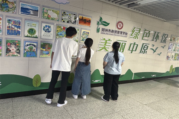 为宣传郑州市文明城市建设,深入向市民宣传绿色环保理念,学校与地铁站开展“绿色环保,美丽中原”主题美术作品宣传活动。在南五里堡地铁站内,“绿色环保,美丽中原”主题宣传墙中一幅幅精美的学生作品吸引了乘客的驻足欣赏,成为郑州城市文明建设中一道亮丽的风景线。
