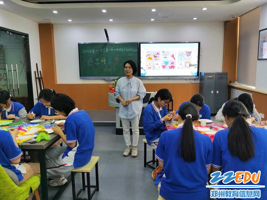 郑州市第一〇一中学心理健康教师张志丹带领大家一起做手工制作活动