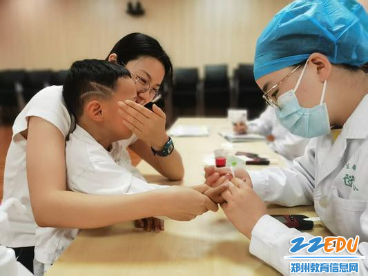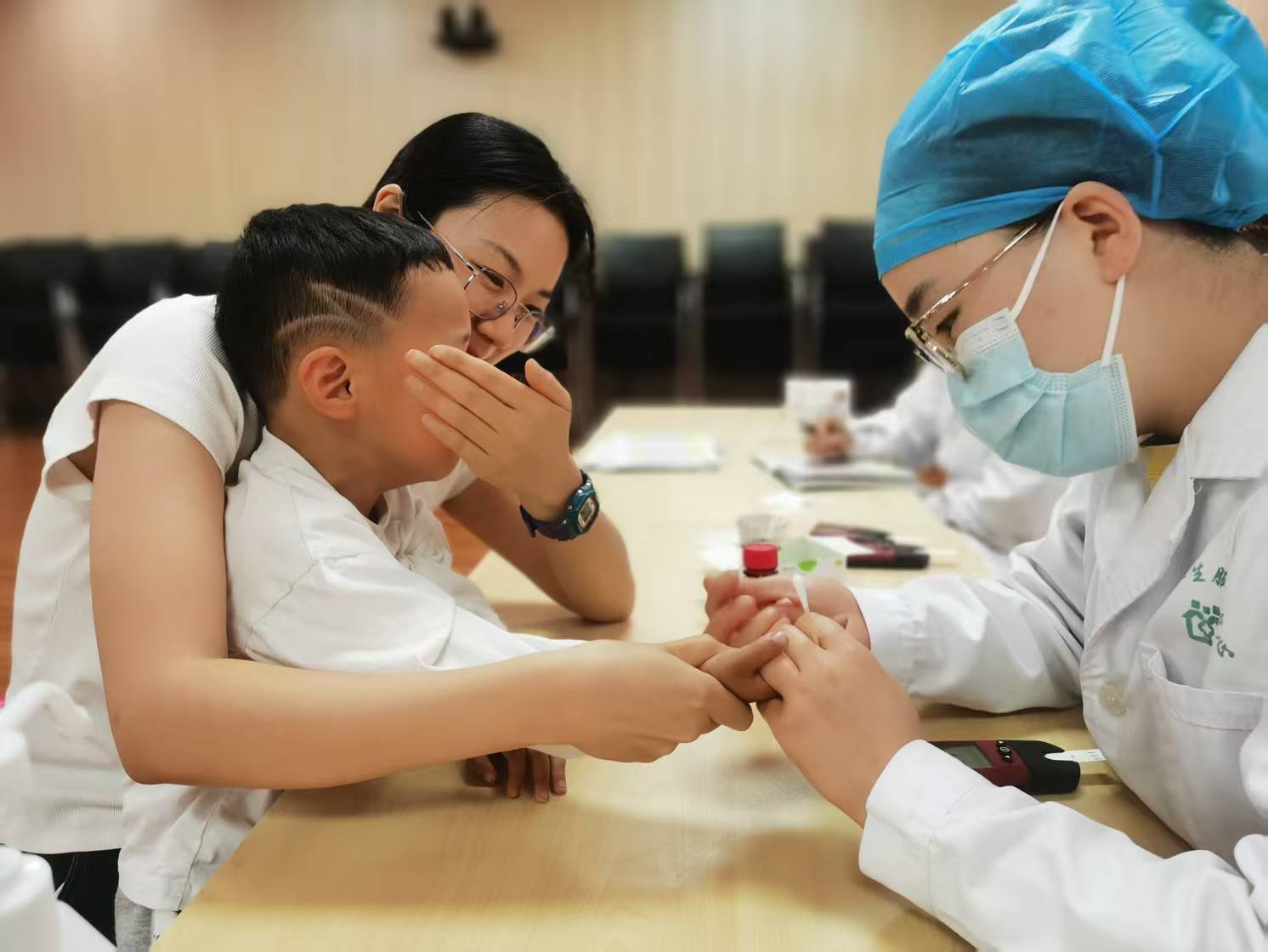 体检前,各班幼儿在老师的带领下,井然有序地在各个检查区域等候。为准确测定血红蛋白指标,要对幼儿进行指尖采血,此时老师们化身为“温暖的守护者”,用温柔的话语、亲切的鼓励,为孩子们进行心理疏导,将原本可能紧张的体检现场,变成了充满欢声笑语的快乐天地,营造出轻松愉悦的氛围。