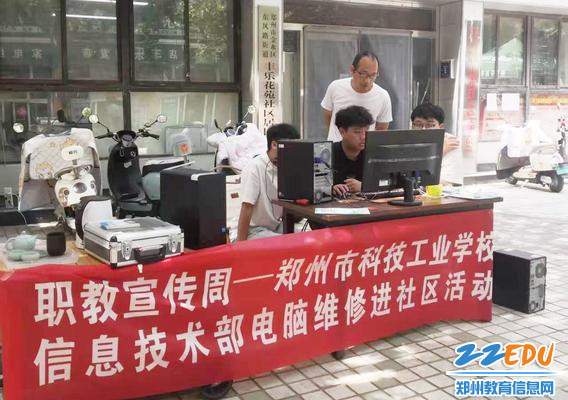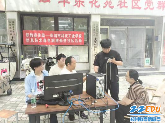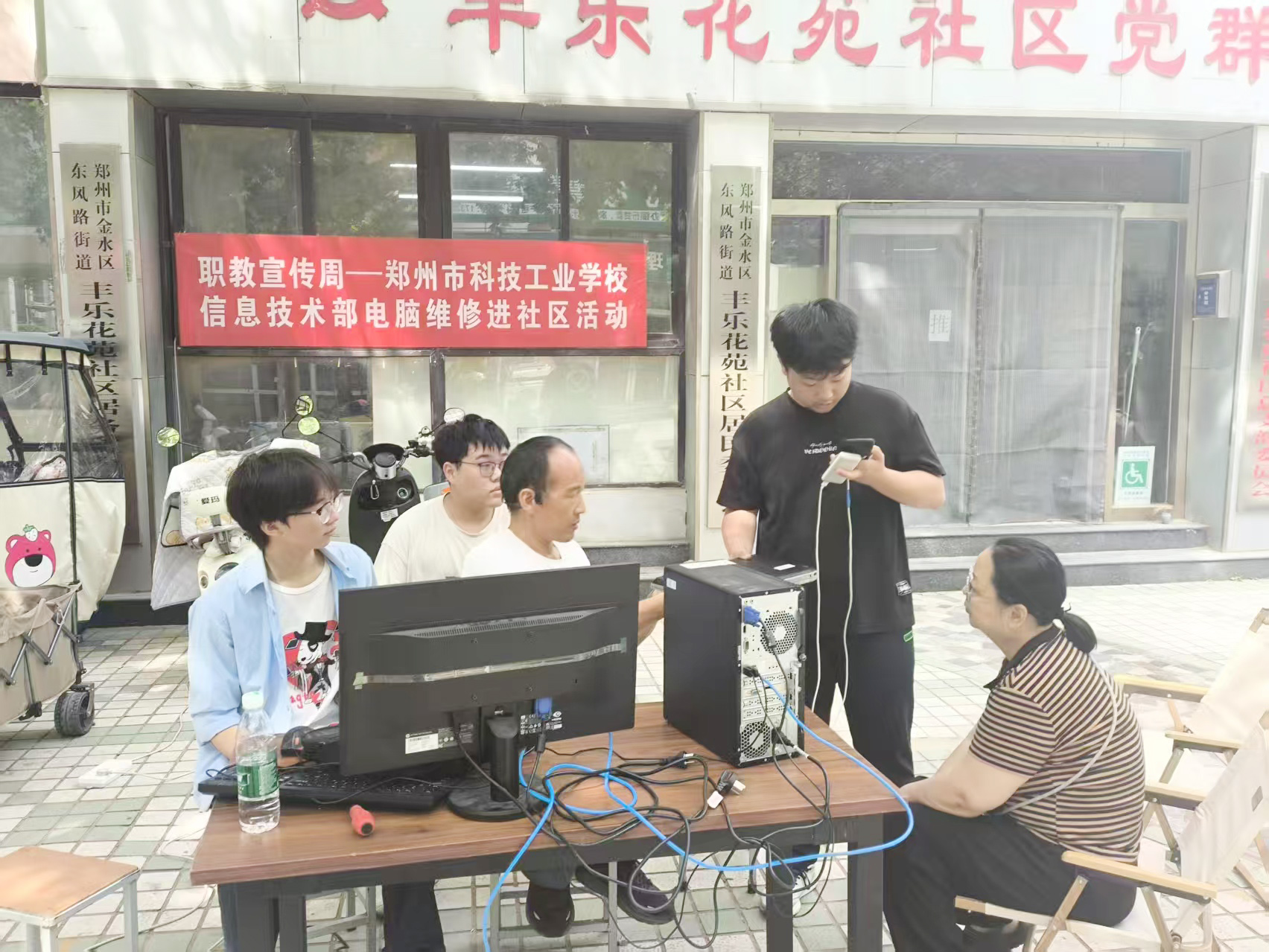 为响应以“一技在手,一生无忧”为主题的2025年职业教育活动周号召,弘扬劳动光荣、技能宝贵、创造伟大的时代风尚,5月15日,郑州市科技工业学校信息技术部师生组成的志愿服务队,走进金水区东风路街道办事处丰乐花苑社区开展电脑维修进社区活动。此次活动不仅是展示职业教育成果、提升学生职业技能的重要实践,更是激发学生创新创业活力、提升社会服务意识的生动体现。
