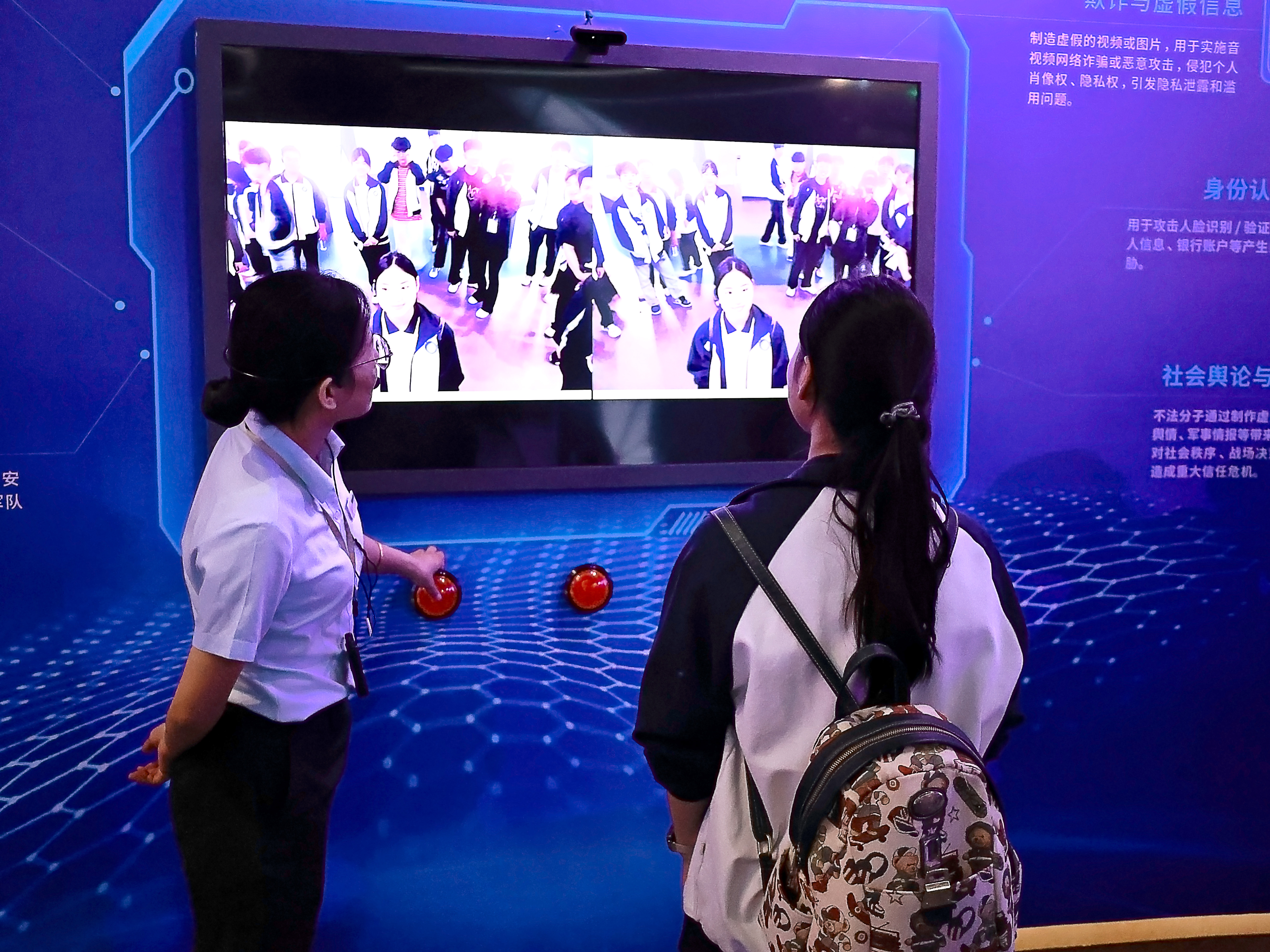 在社会安全展区,讲解员详细介绍了个人指纹、人脸图像被盗取的严重危害性,并传授了切实可行的保护个人信息的方法。学生们认真聆听,不时提出问题,与讲解员积极互动。通过讲解,学生们进一步认识到保护个人生物识别信息的重要性,纷纷表示以后会更加谨慎地对待个人信息的使用。