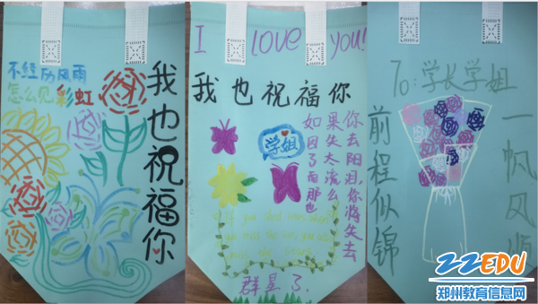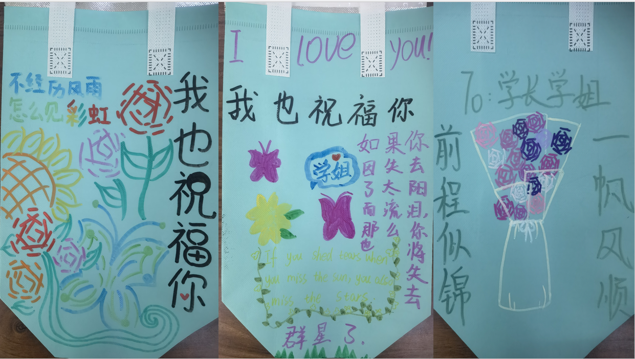 大家用心寄语学长、学姐:“亲爱的学长、学姐,以你的自信,以你的乐观,以你的毅力,还有我的祝福,你一定能够驶向理想的彼岸。”